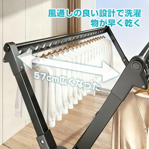 BAOYOUNI 折り畳み 室内干し コンパクト収納 使用時:約W95‐173×D25×H160cm 組み立て簡単 ブラック 3WAY 物干しスタンド