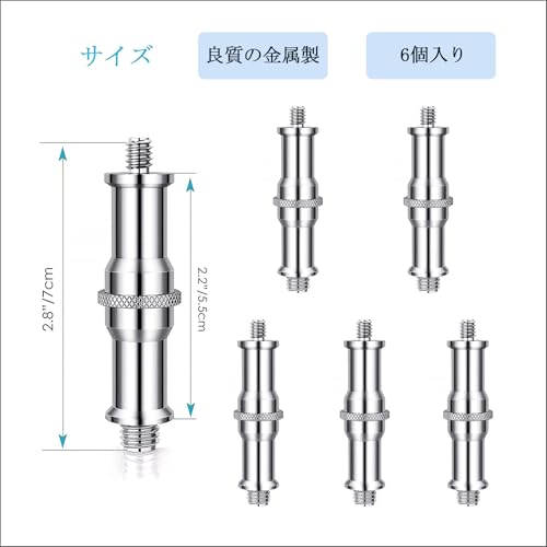 Selens 汎用1/4 "と3/8 "オスネジ スピゴット 平らな部分がある 変換 アダプター ダボ 6個セット 撮影用 金属 コンバーター 三脚/スタジオライトスタンド/カメラ/ホットシュー適用