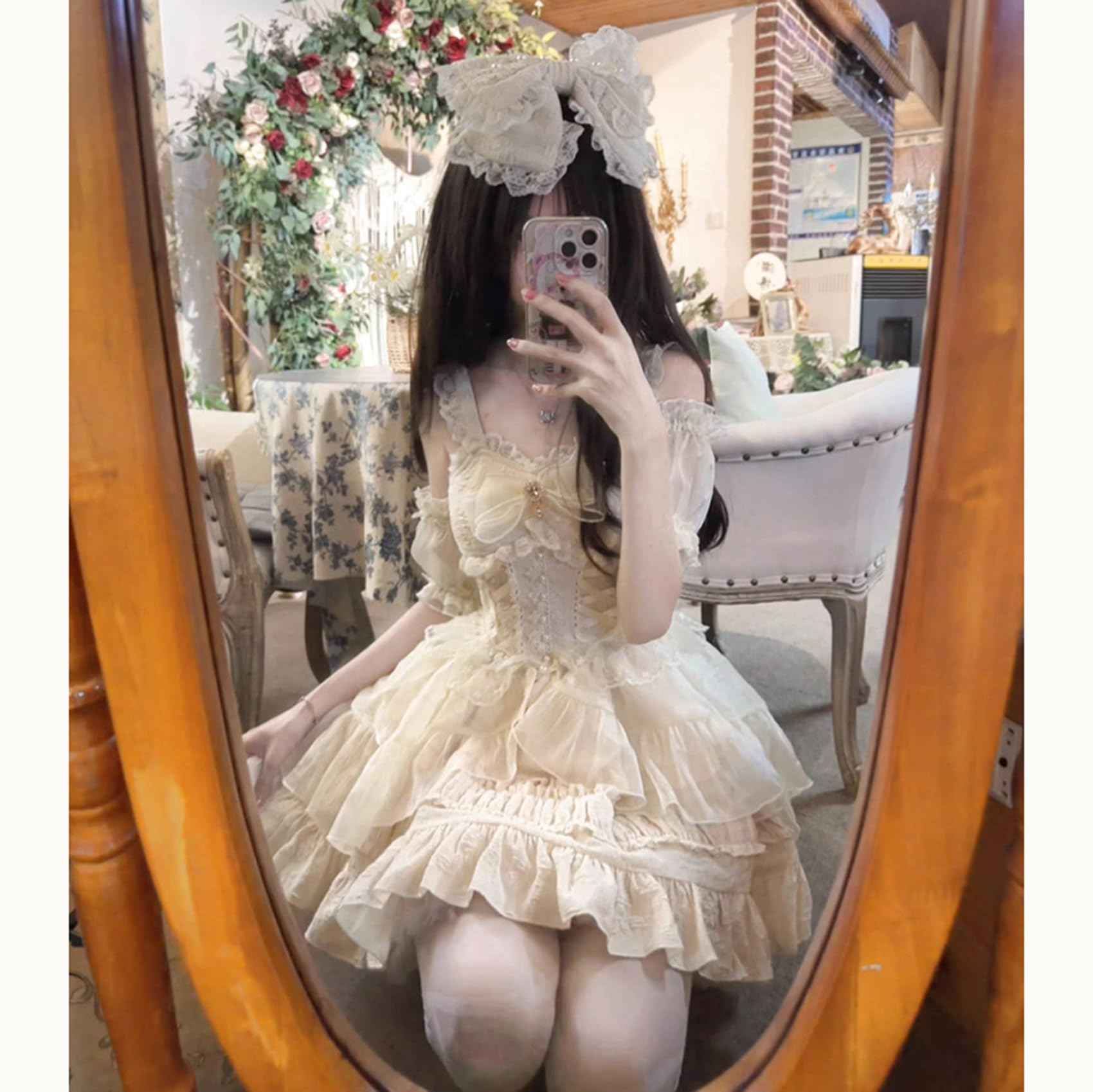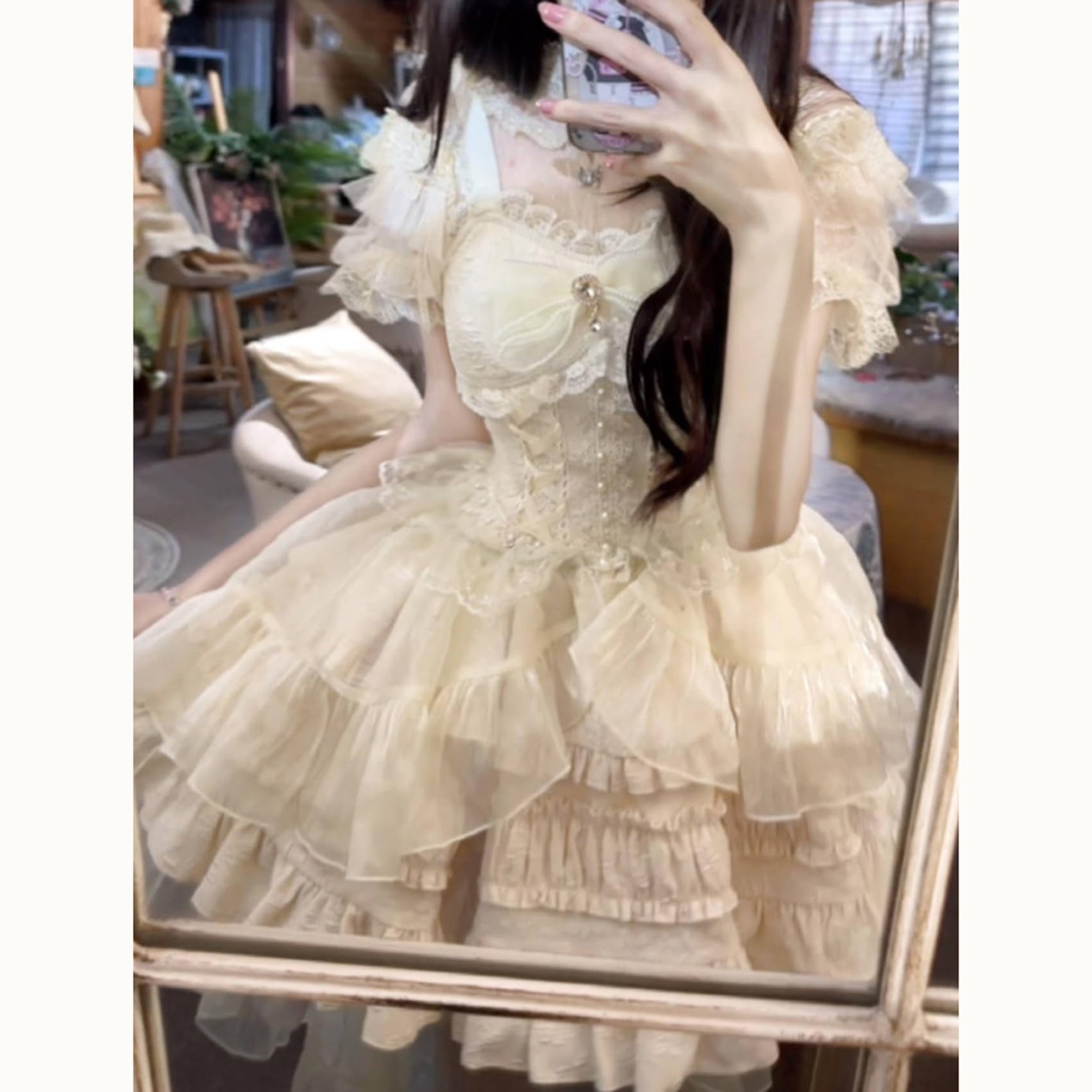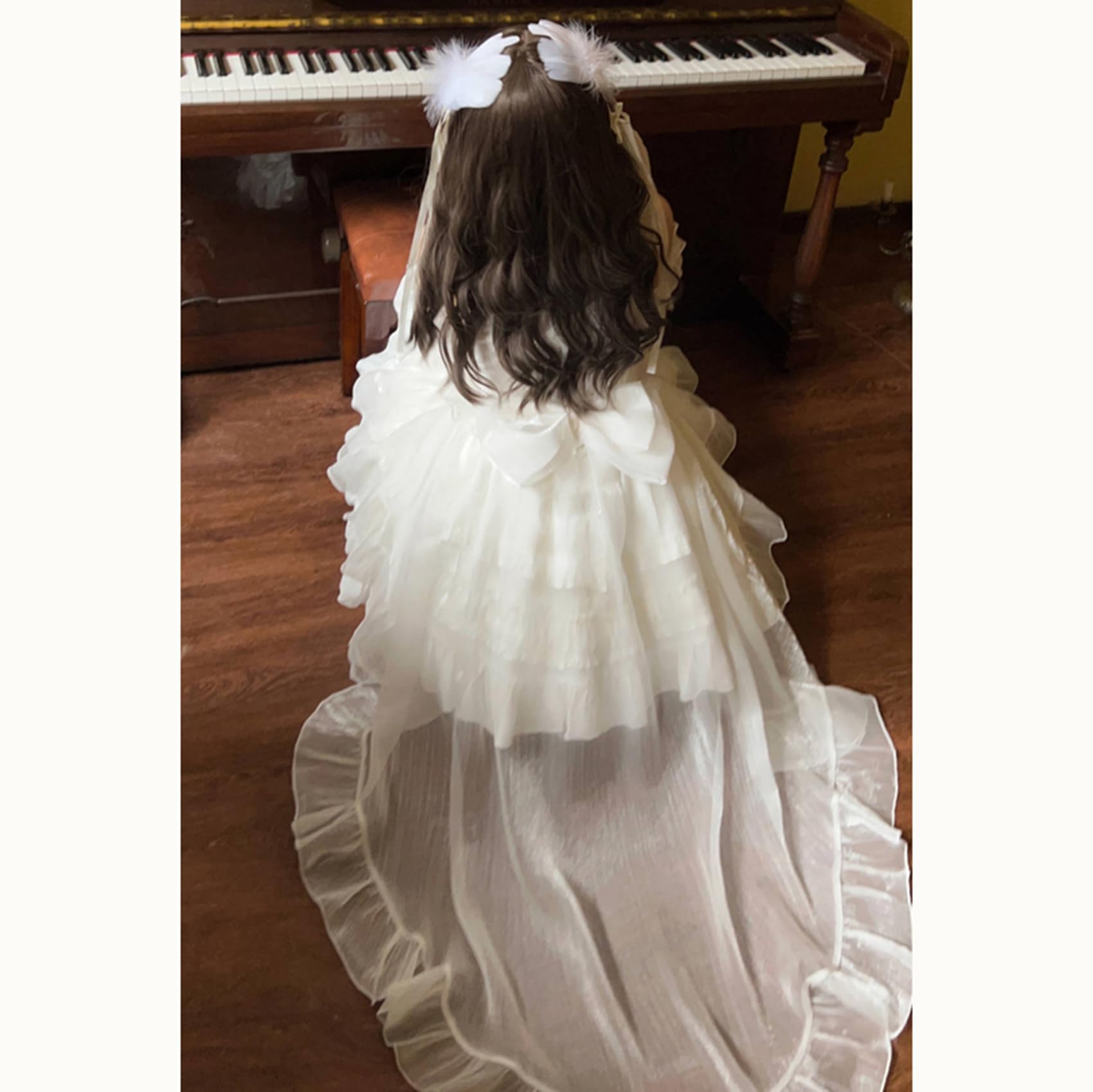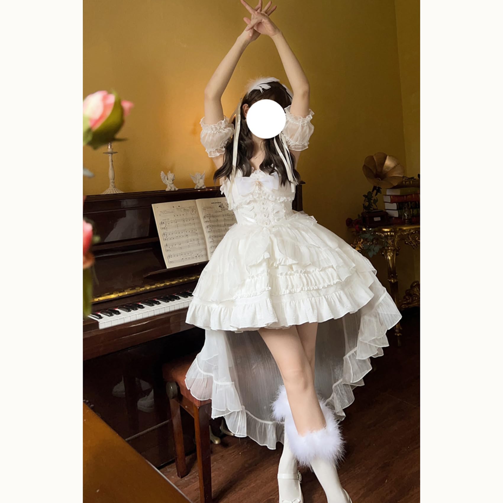[ボズとガルヤ] ロリータ ティアードワンピース オフショルダー 長い裾 コスプレ衣装 チュール 透け感 フリル 白 黒 ピンク 水色 赤 半袖 ゆめかわいい cosplay lolita ハロウィン仮装
