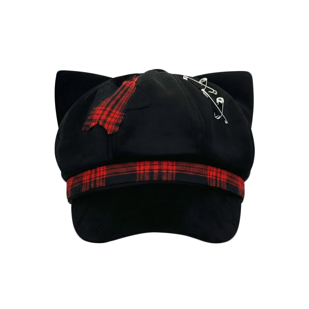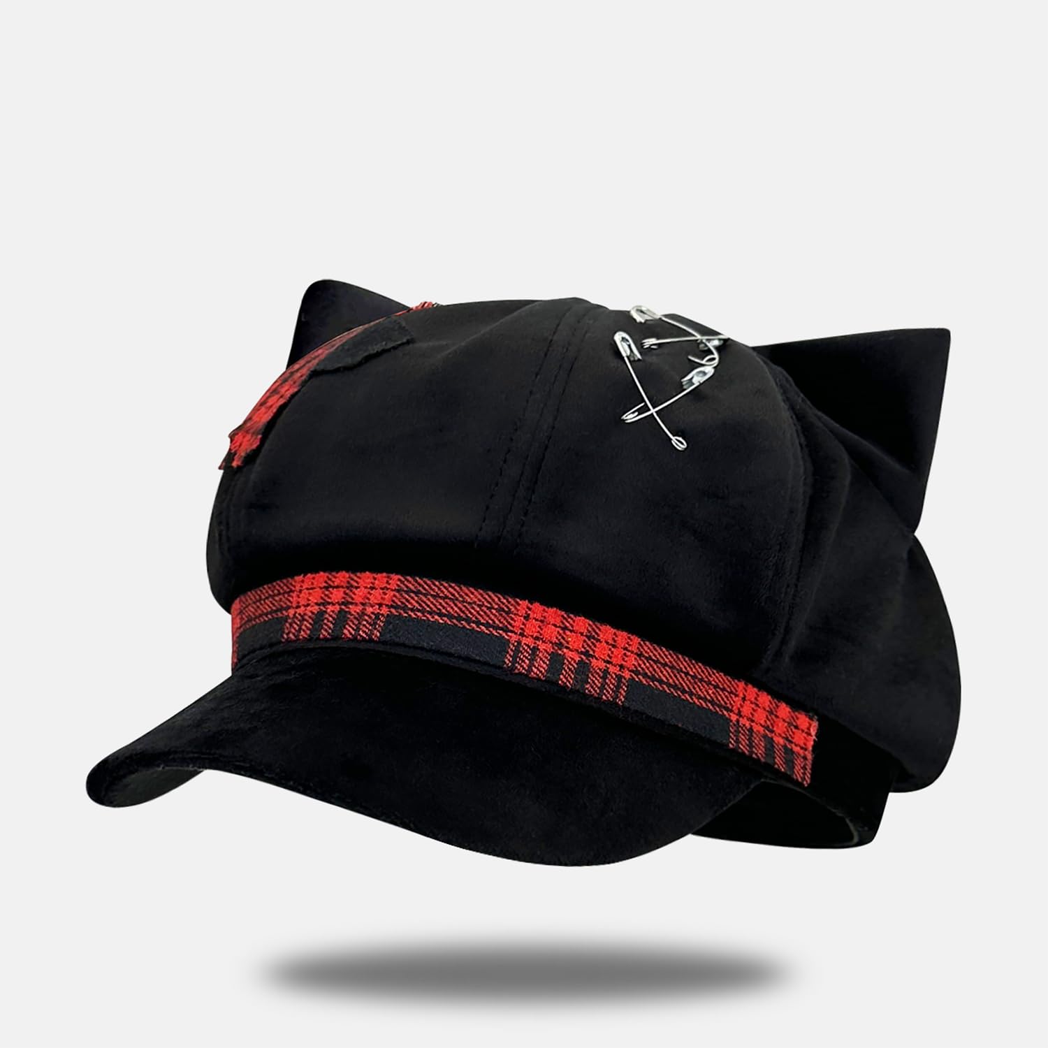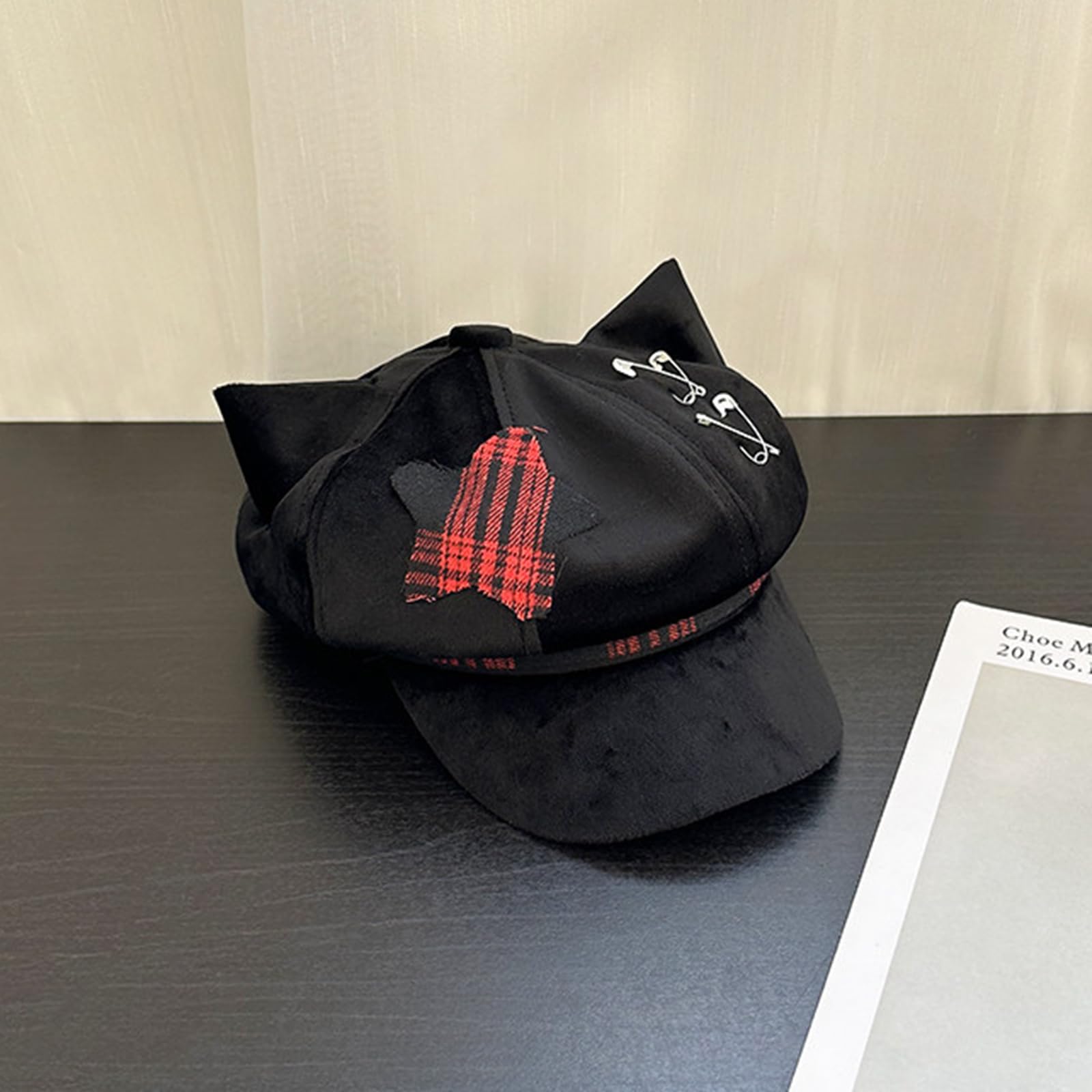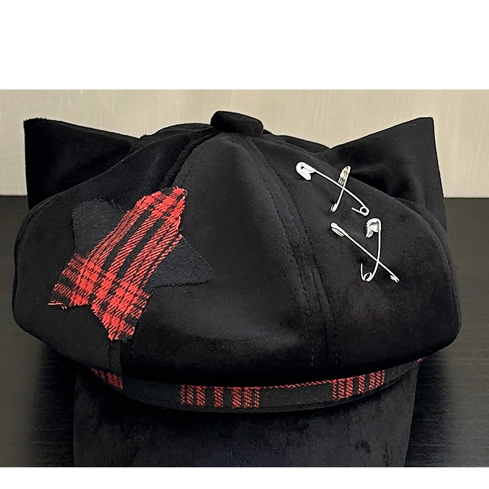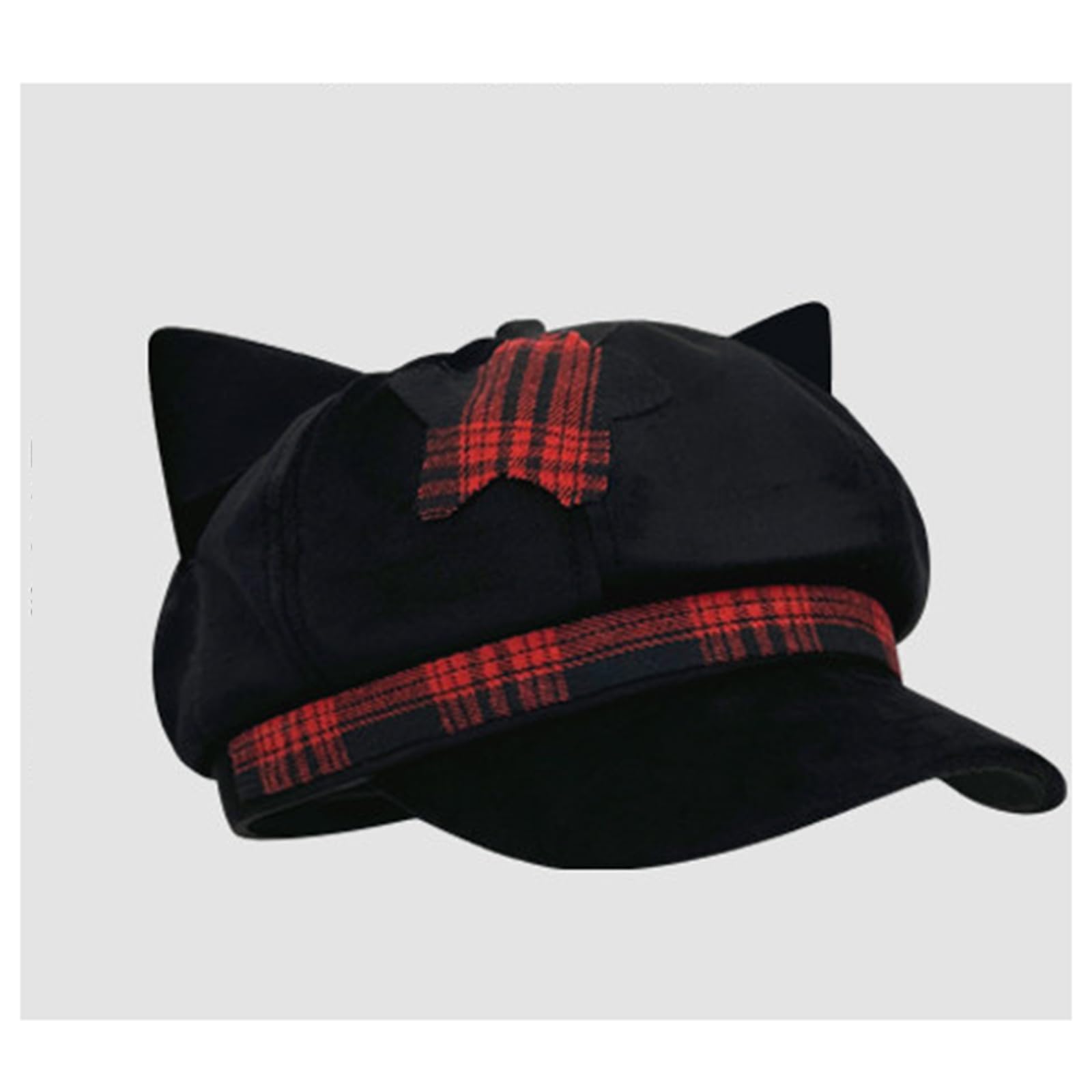[ボズとガルヤ] キャスケット レディース 猫みみ チェック柄 ベレー帽子 画家帽 ファッション ゴシック風 地雷系 原宿パンク ロリータ uvカット 小顔効果 防寒 ハンチング帽 可愛い 柔らかい 日常 旅行 クリスマス