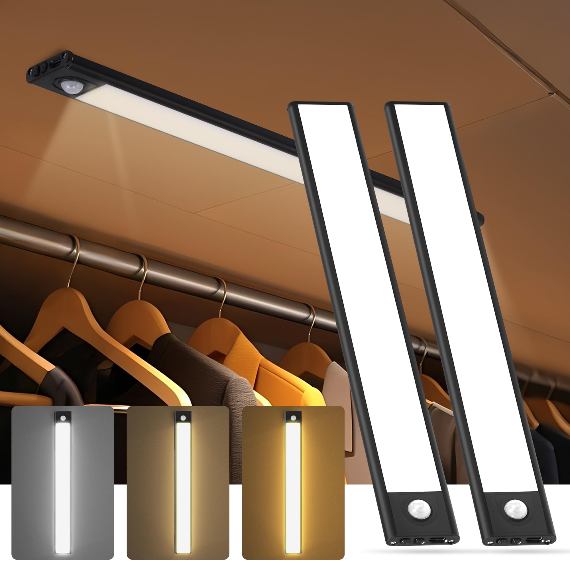 【2本セット】人感センサーライト 室内 充電式 30cm 2200mAh【超薄型9mm】ledバーライト マグネット取付 工事不要 3000K-6000K 3色温度調光 10段階調光 Type-C 充電 高感度クローゼット 部屋 玄関 廊下 キッチン 棚 階段 キャビネット 日本語説明書付き (ブラック 2個入り)