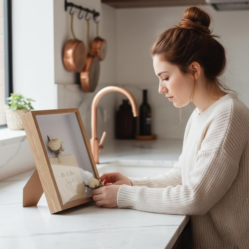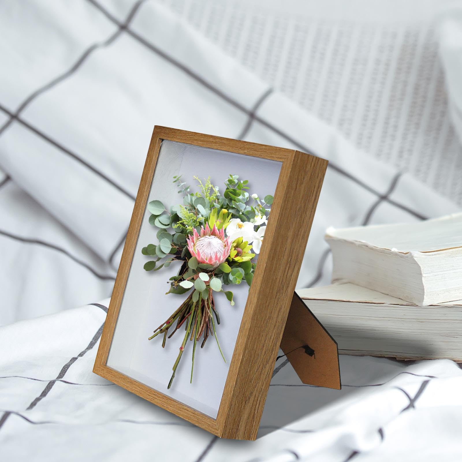 LOL-FUN 20x15cm木製シャドウボックスフレーム 3cmの深さ、素朴な飾りドライフラワーディスプレイケースシャドーボックスアートワーク記念品写真装飾, 木色