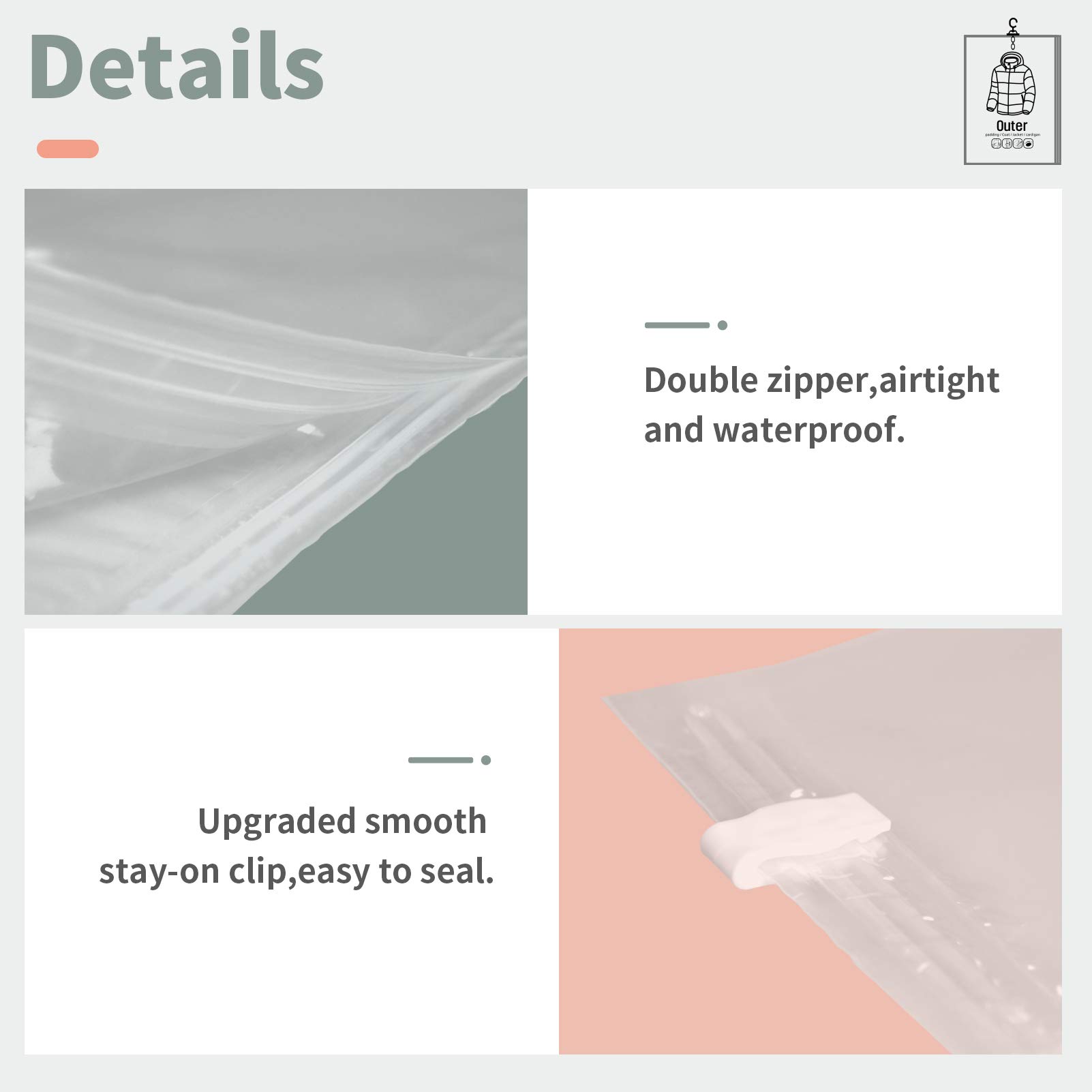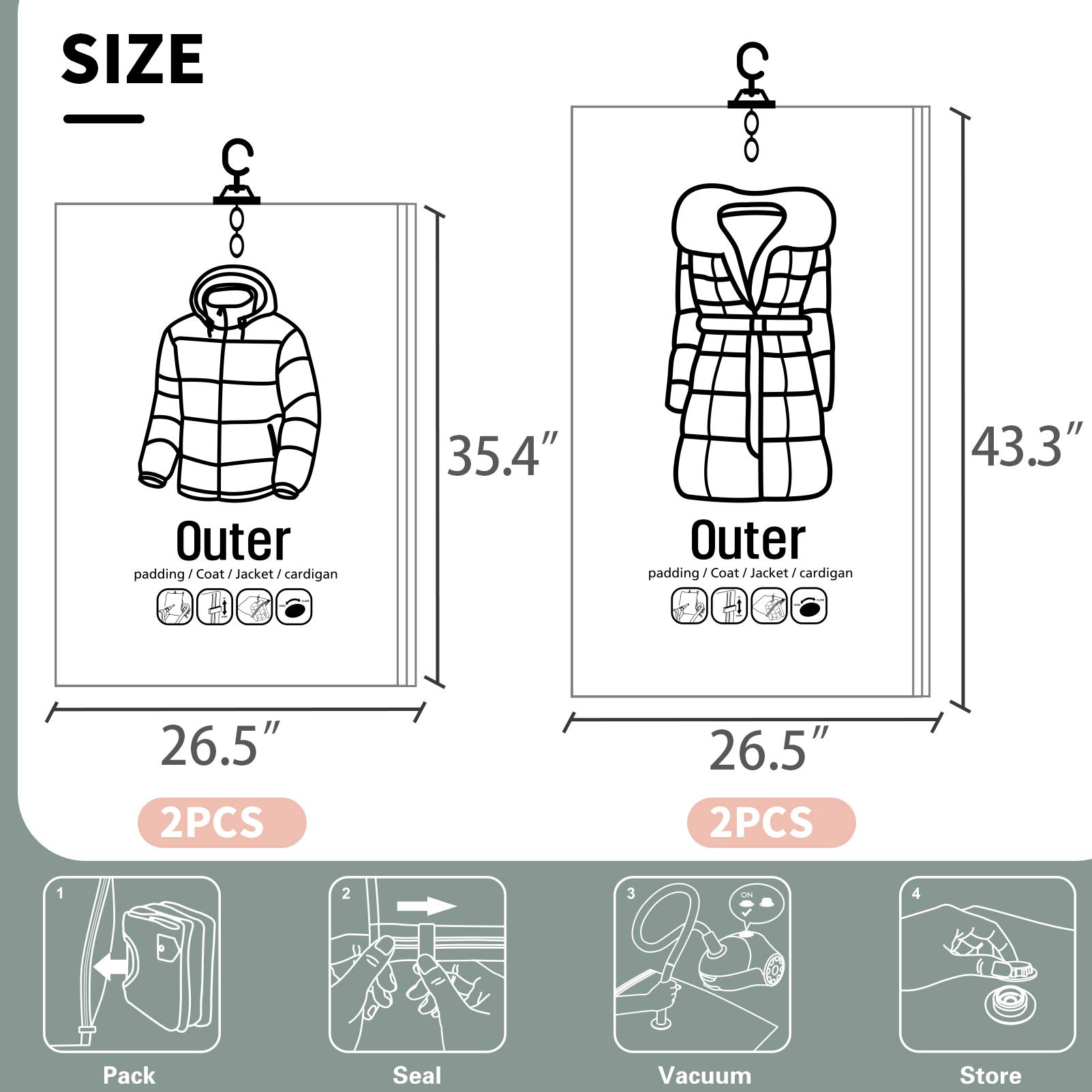 TAILI 圧縮袋 衣類圧縮袋 吊るせるあっしゅく袋コート収納袋 季節転換用 掃除機対応 省スペース 繰り返し利用可能 4枚組135*70*20*20cm(2個) +105*70*20*20cm(2個)