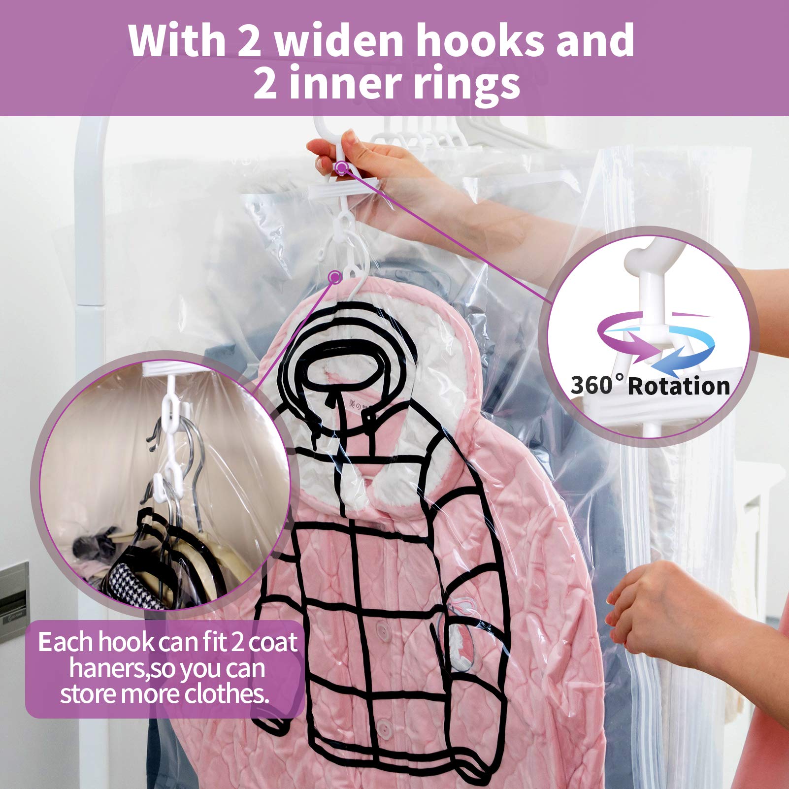 Meetall 4枚セット ハンガー式真空圧縮袋 厚手PA素材 ダブルジッパー 360°回転フック付き 衣類収納 省スペース 67x90cm x2枚 + 67x110cm x2枚