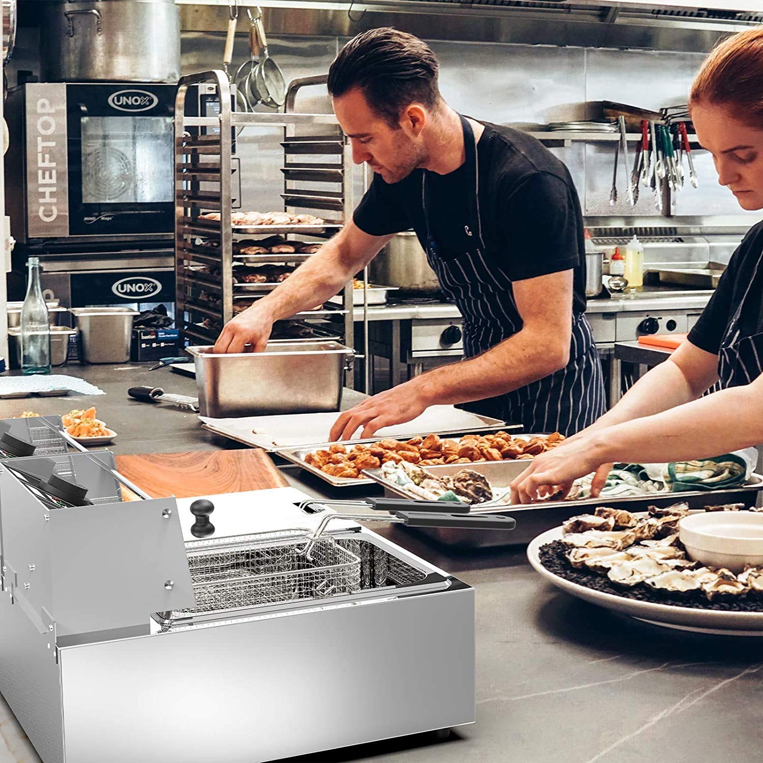 電気フライヤー 卓上フライヤー 業務用フライヤー 12L 二槽式 温度調節可能 操作簡単
