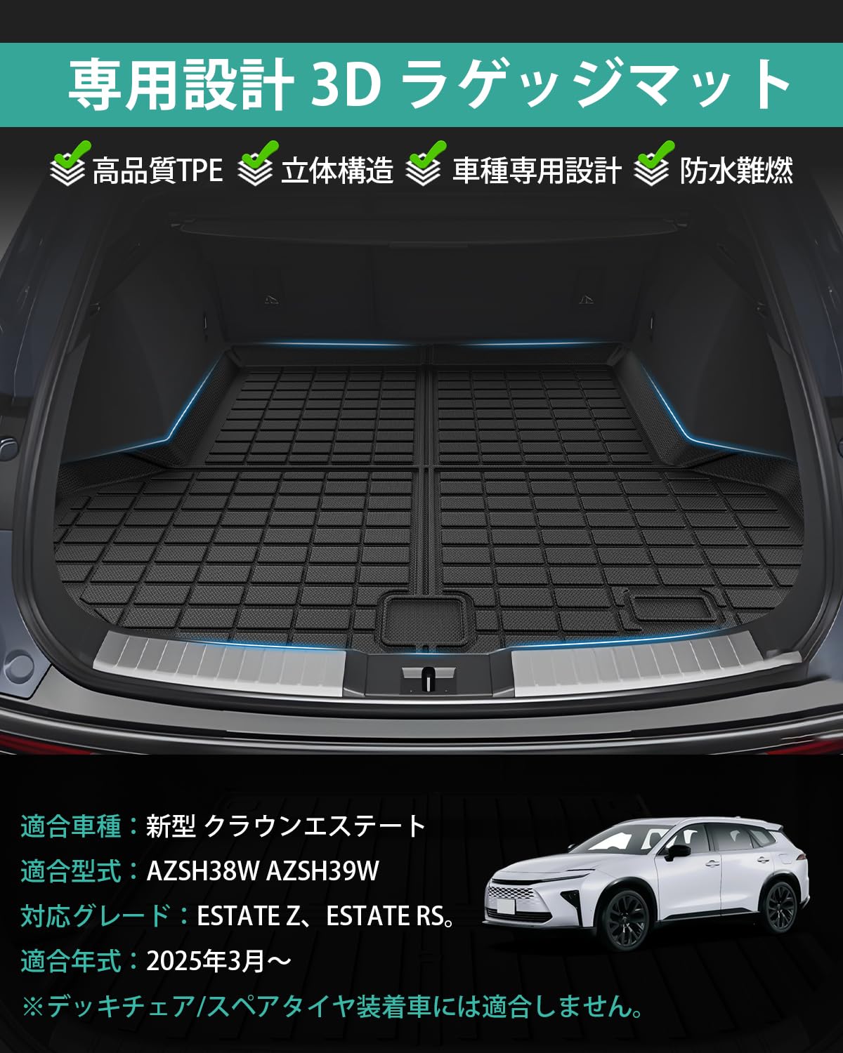 Mixsuper 新型 クラウンエステート ラゲッジマット トランクマット Crown Estate AZSH38W AZSH39W ラゲッジカバー 3D ラゲッジボード 2025年3月~ クラウンエステート アクセサリー 車種専用設計 TPE素材 防水 耐摩耗性 簡単取付 荷物収納 1点セット