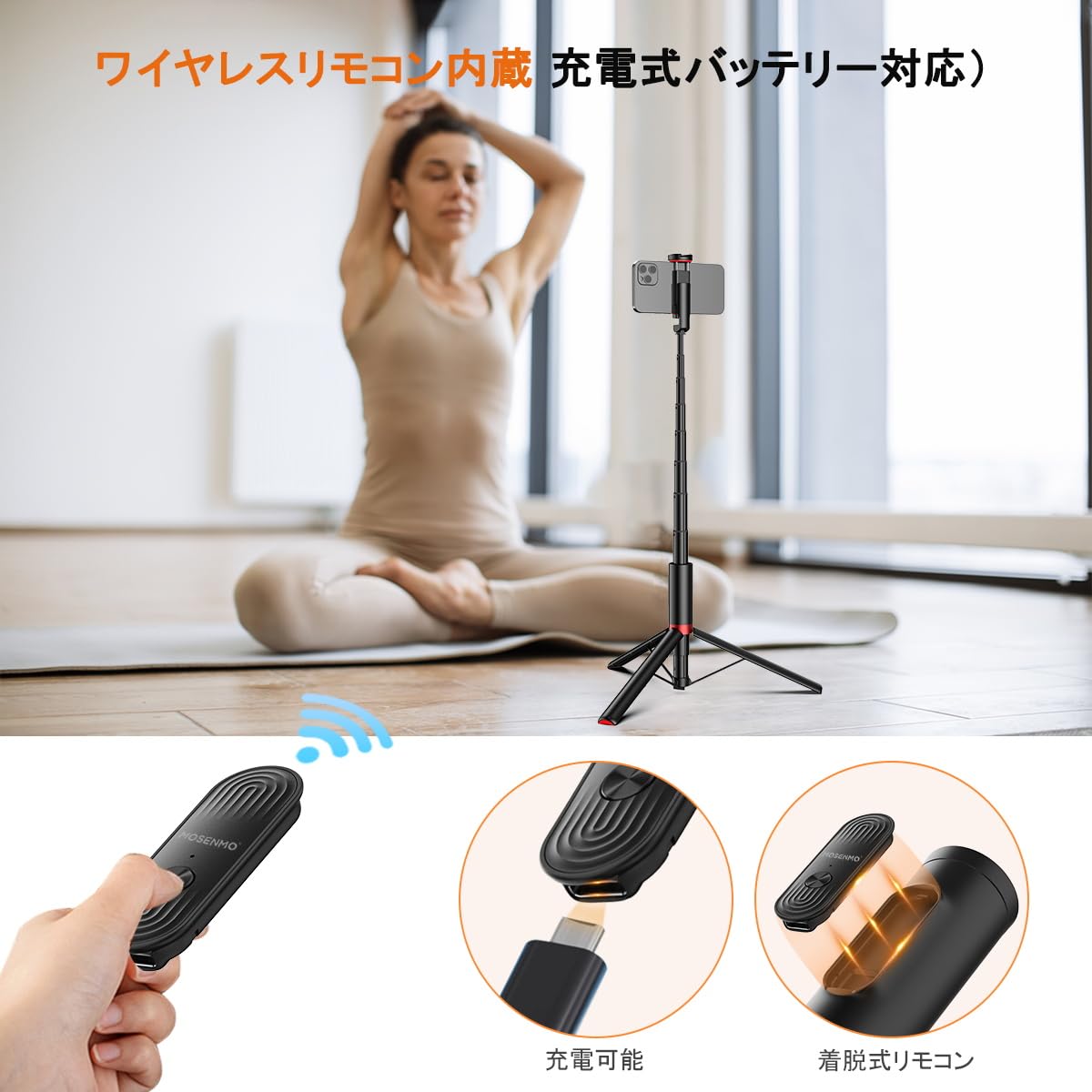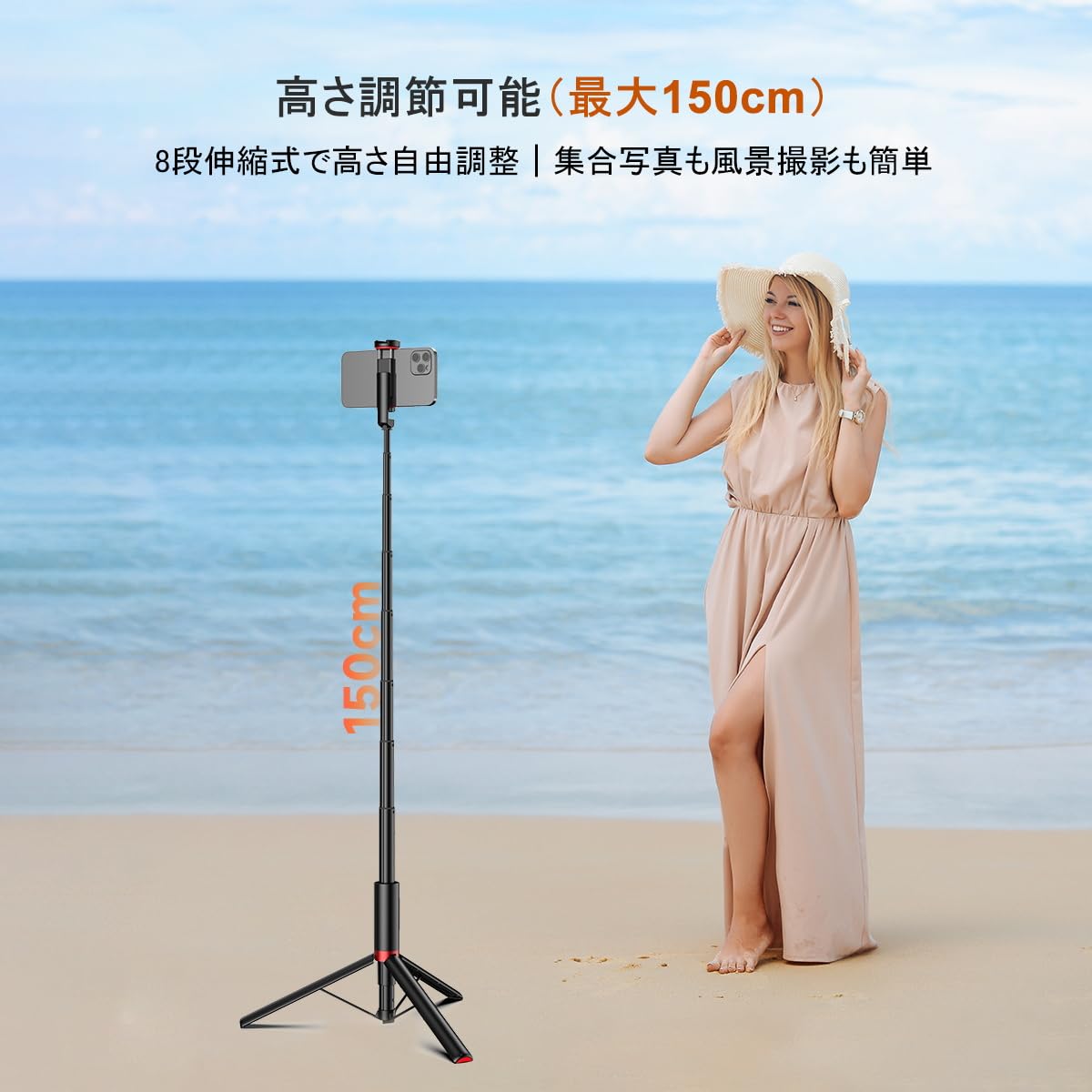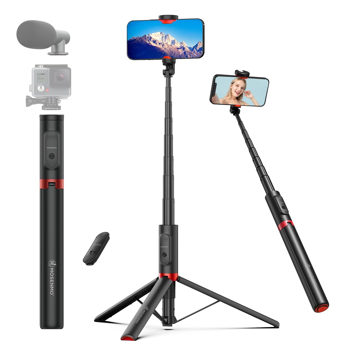MOSENMO 自撮り棒 三脚一体型 3in1自動展開式三脚 ワンタッチ秒開閉 150cm伸縮収納一体式 360°角度調整 超軽量 携帯 安定性を強化する 折り畳み式 8段階伸縮 アルミニウム合金製 磁気充電式リモコン グループ撮影/Vlog/旅行用 iphone&android&カメラ対応