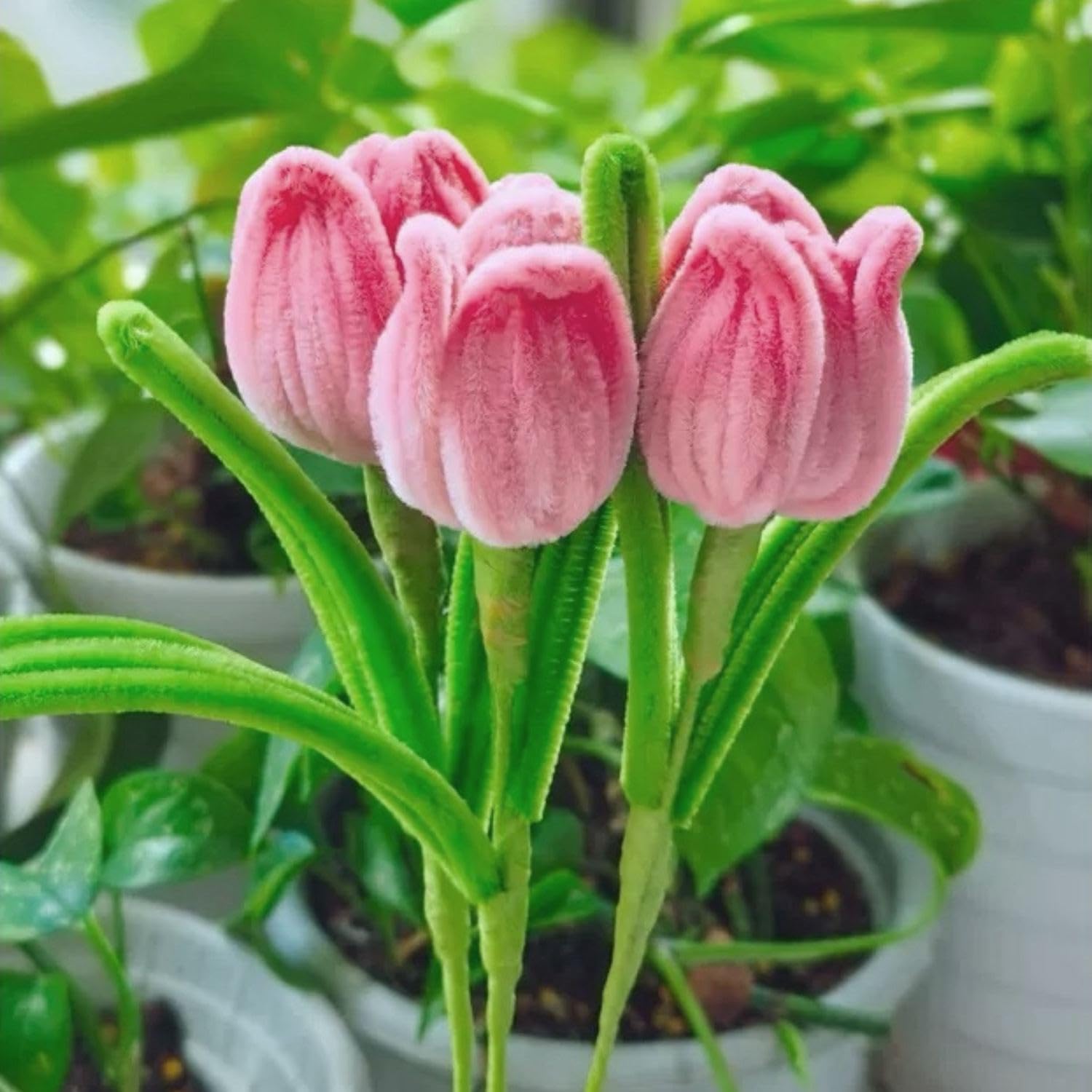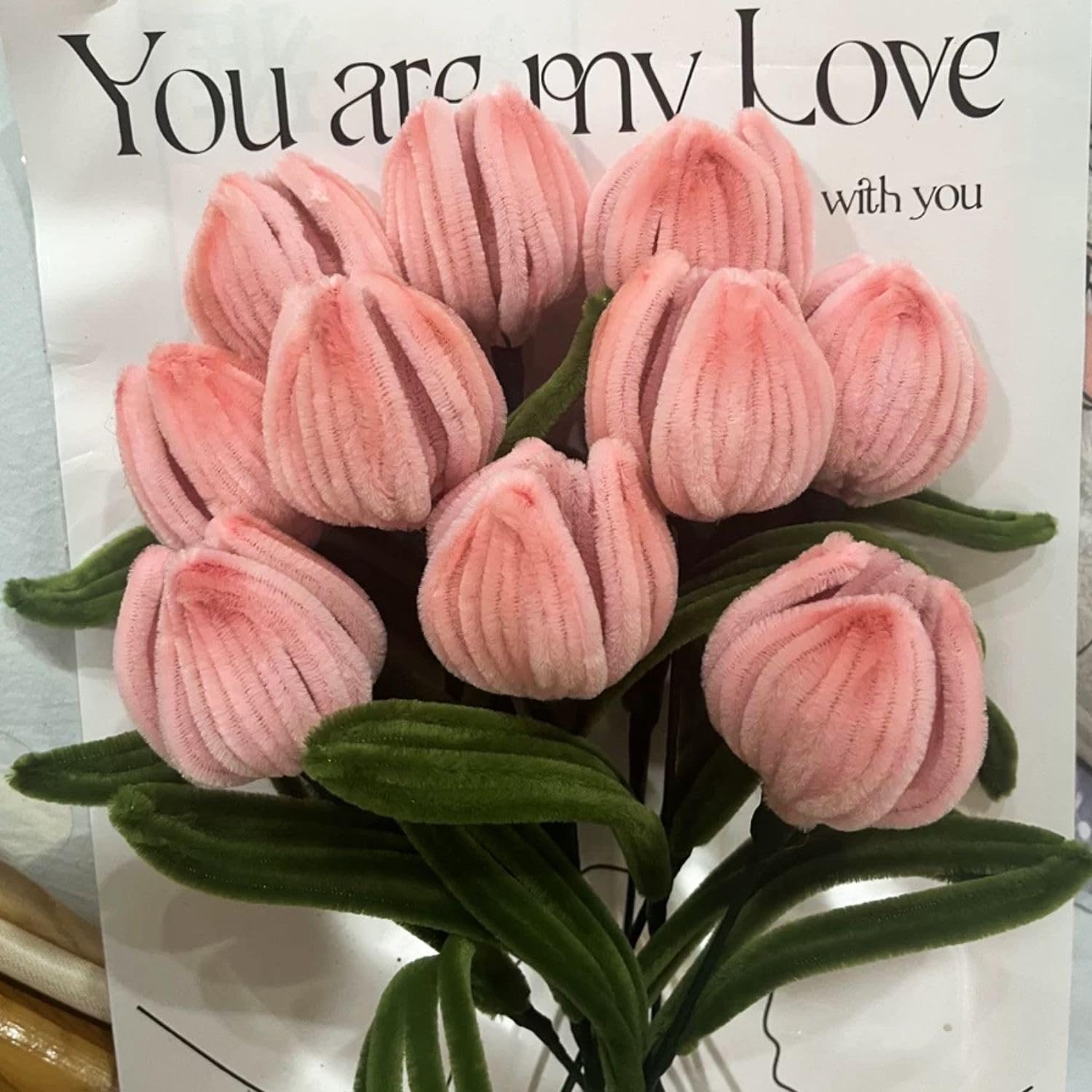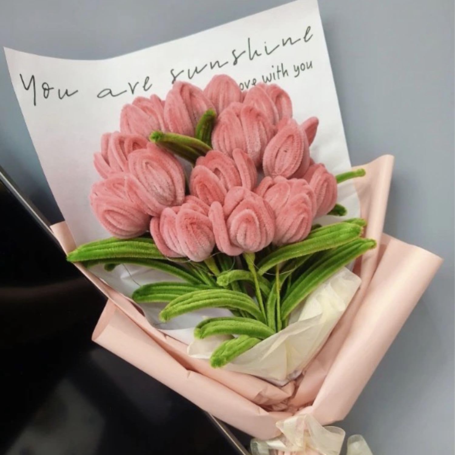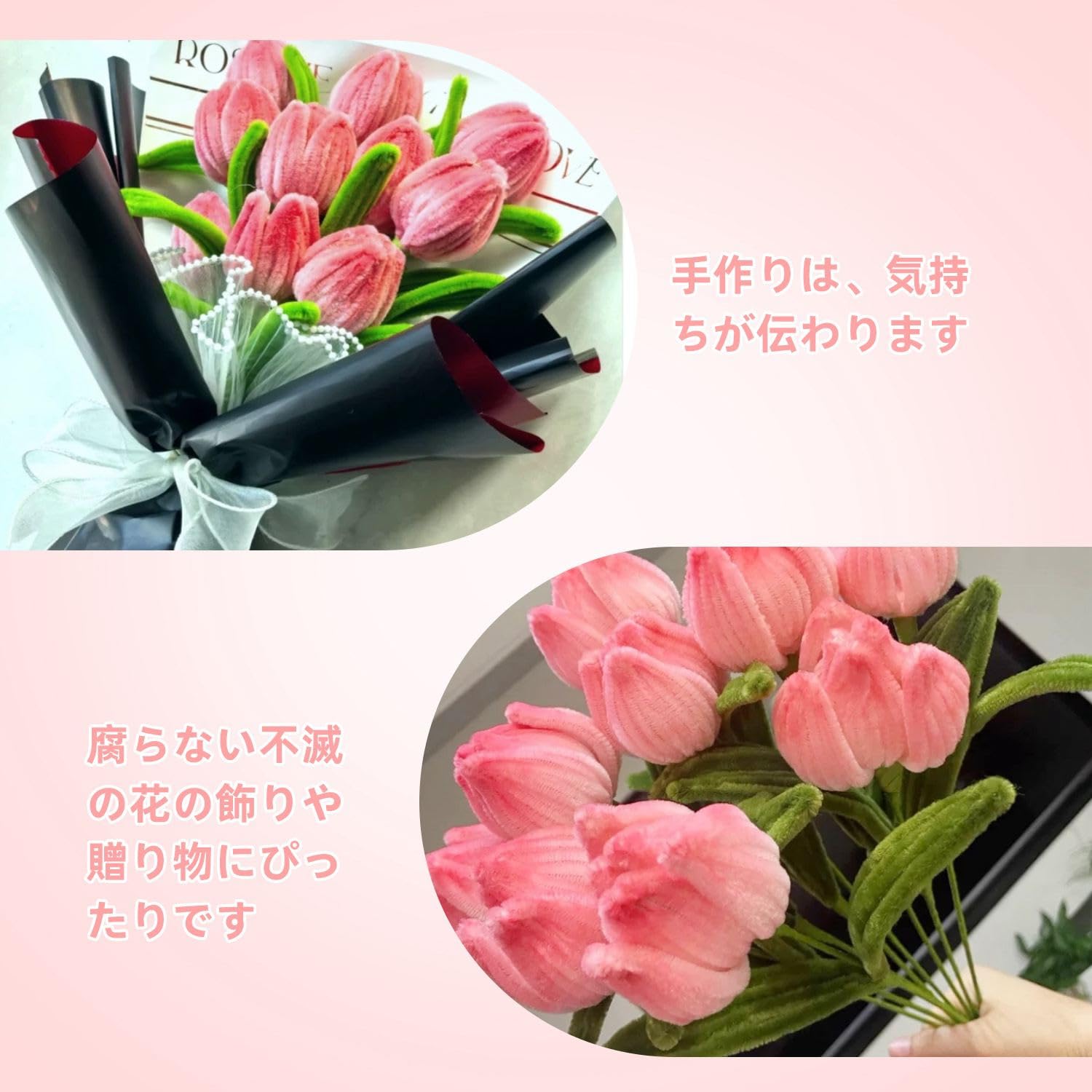 KKLM 手芸モール チューリップの手芸キット ピンク+グリーン 200本 6mm カラーモール 16本人工花茎 フラワーテープ2巻付き DIYモールフラワー インテリア/手芸用 記念日/誕生日/母の日/バレンタインに最適 花びら作りの楽しさが広がる