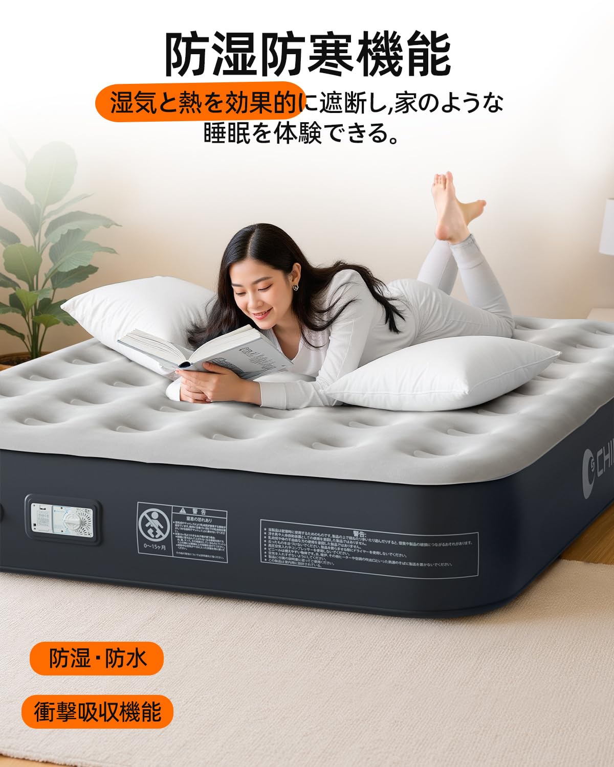 エアーベッド H&W 独自技術 エアーベッド セミダブル 電動エアーベッド 来客用 40cm 電動 ポンプ内蔵 キャンプ用品 自動膨張 Type-c充電 防災 寝具 耐荷重900g 日本語取扱書 収納袋付き 枕付き 防水性 通気性 (モカ)(モカ)