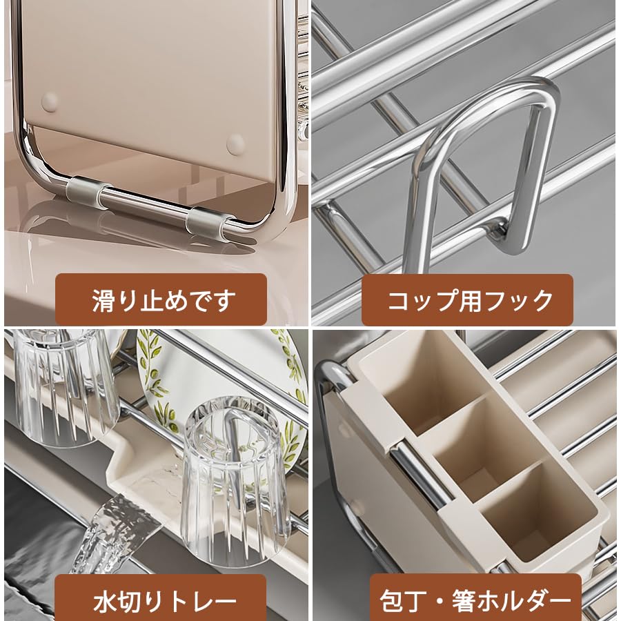 Zilnox 水切りラック スリム ステンレス 食器 水切り かご シンク上 ラック 大容量 キッチン 箸立て 省スペース 食器乾燥 2段 ブラウン 幅43*奥行17*高32CM