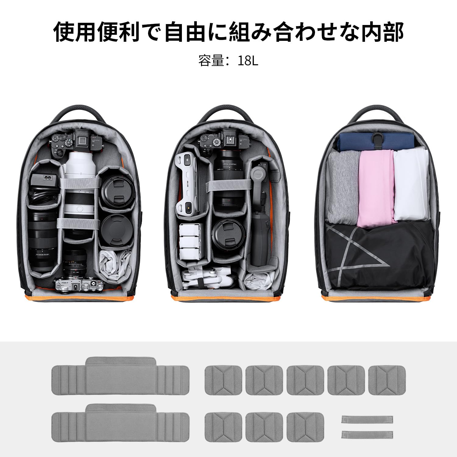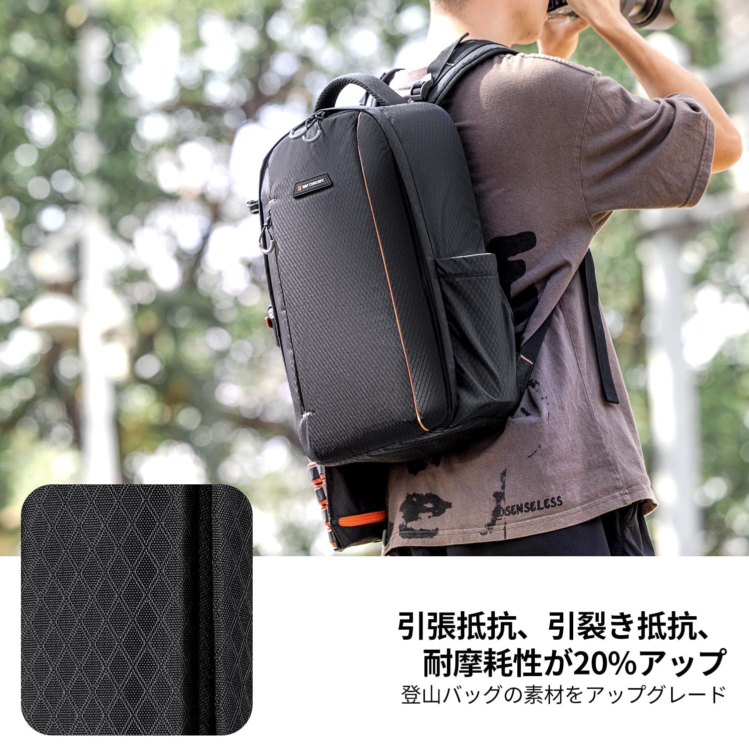 [K&F Concept] カメラバッグ リュックサック 18L 大容量 おしゃれ 軽量 一眼レフ/14インチpc/三脚収納可 撮影バックパック 撥水加工 トラベル/外出/登山/旅行/アウトドア撮影に適応