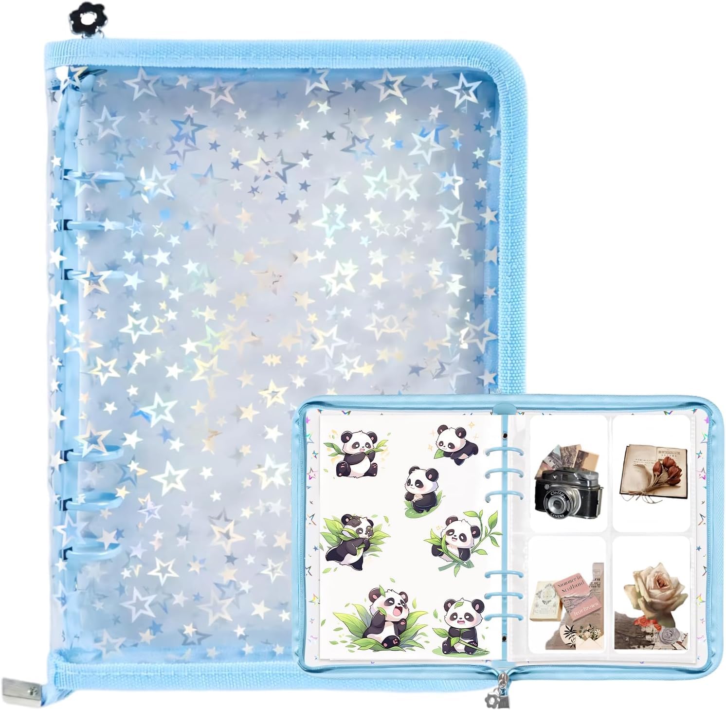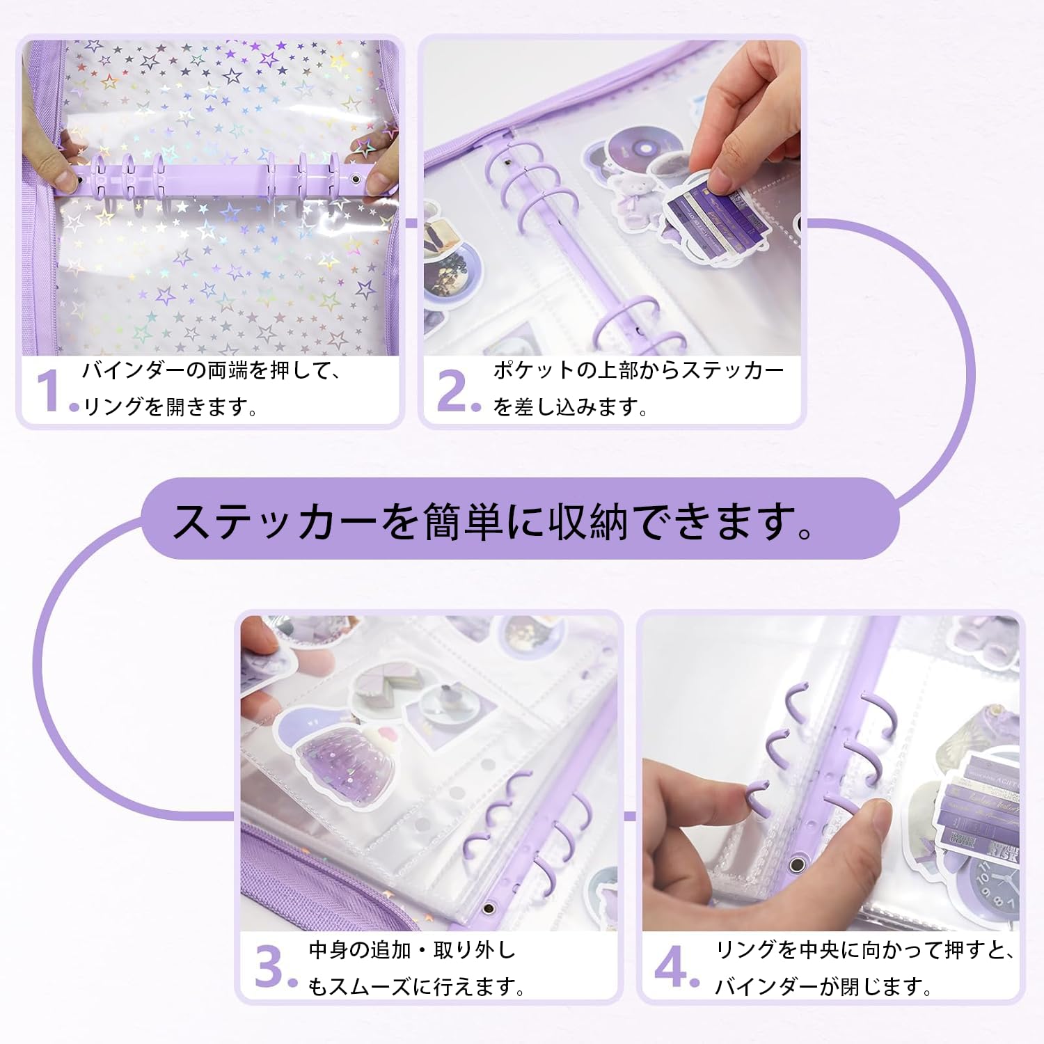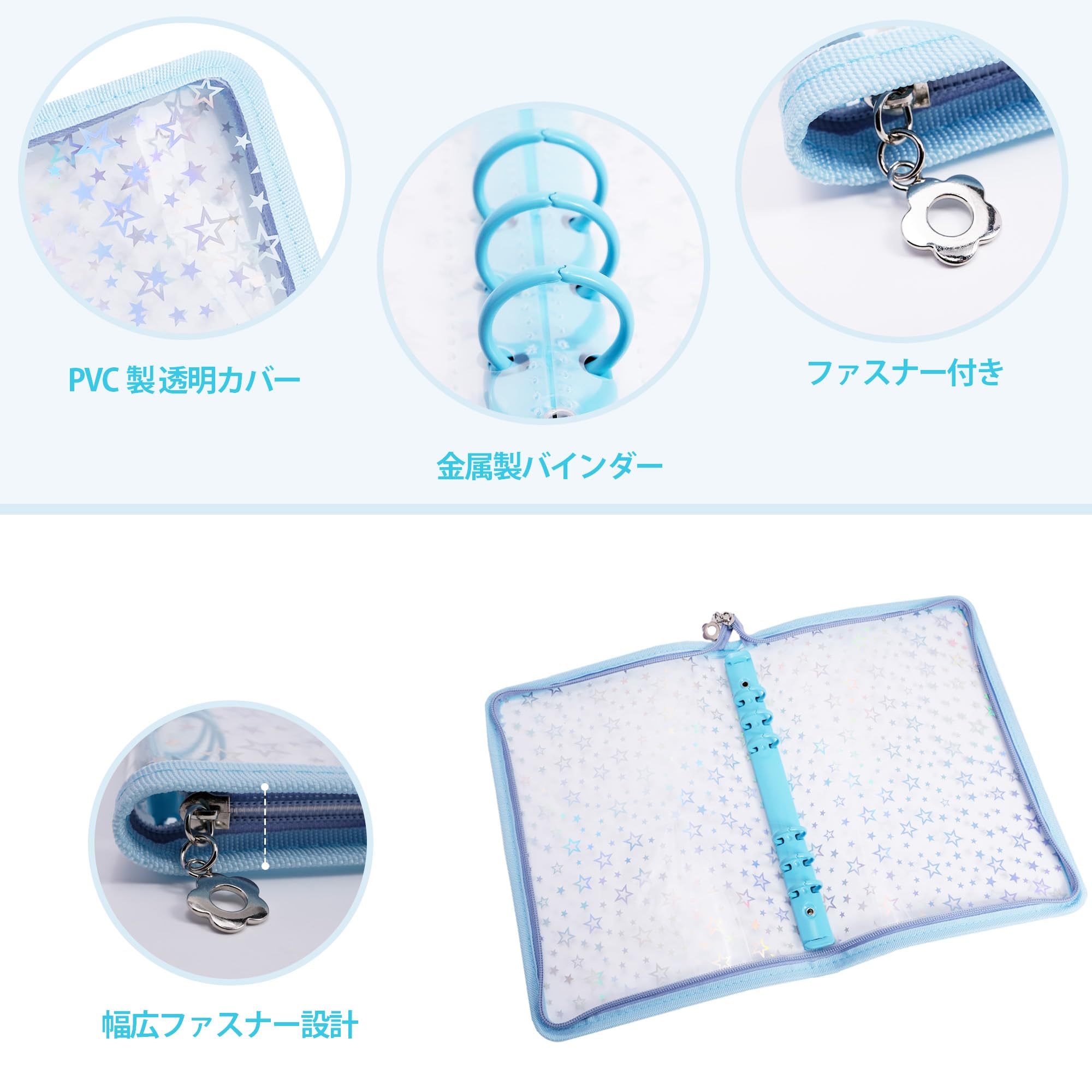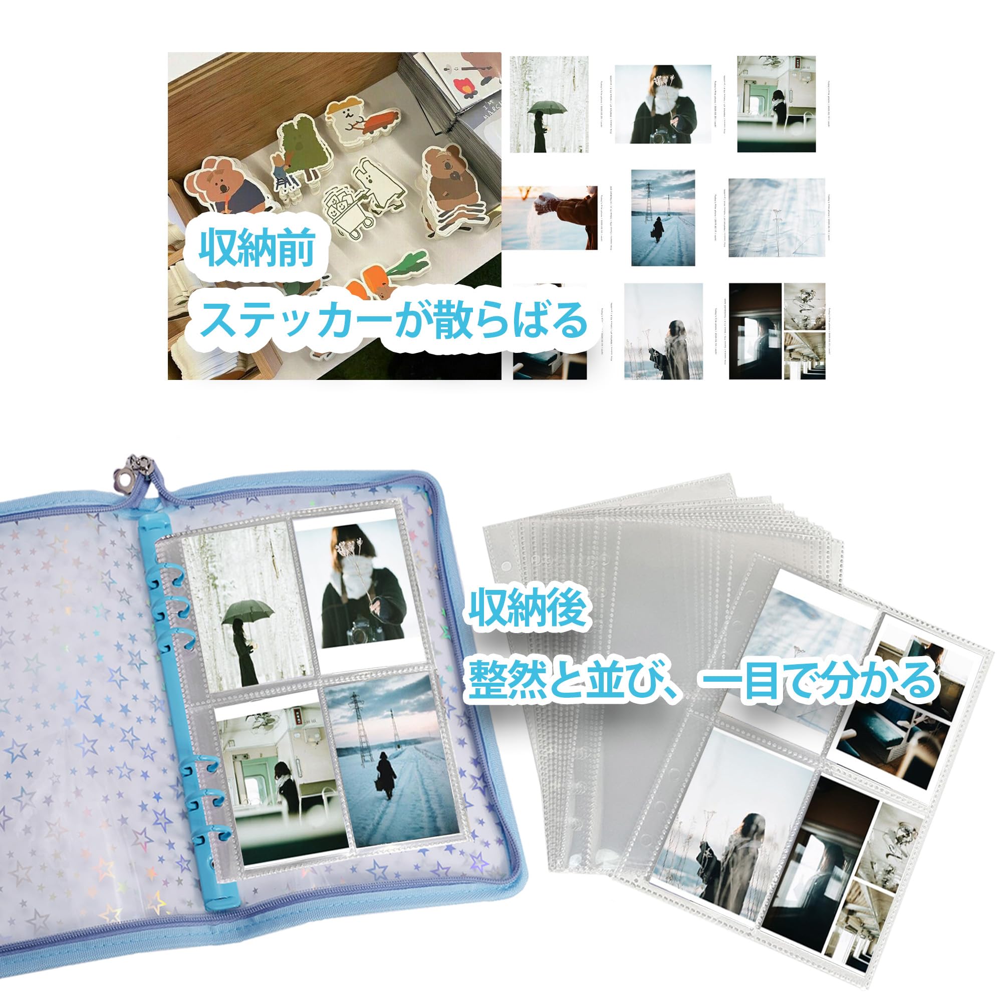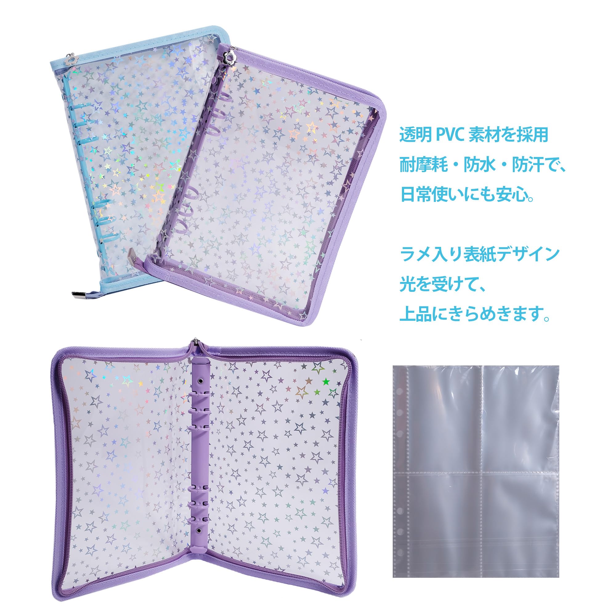 シール手帳 A5 大きいサイズ 透明 シール帳 収納バインダー 6穴 プリクラ・チェキ対応 推し活 ステッカー整理 透明ポケット ファスナー付き 女の子向け リフィル10枚 かわいい