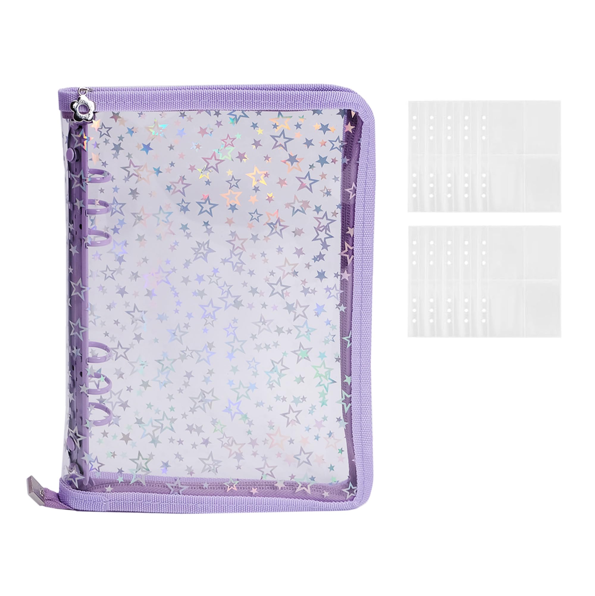 A5サイズ ジッパー付きバインダーポケット, 6穴, PVC製, 半透明, 10枚セット (バインダー+10枚ポケット)