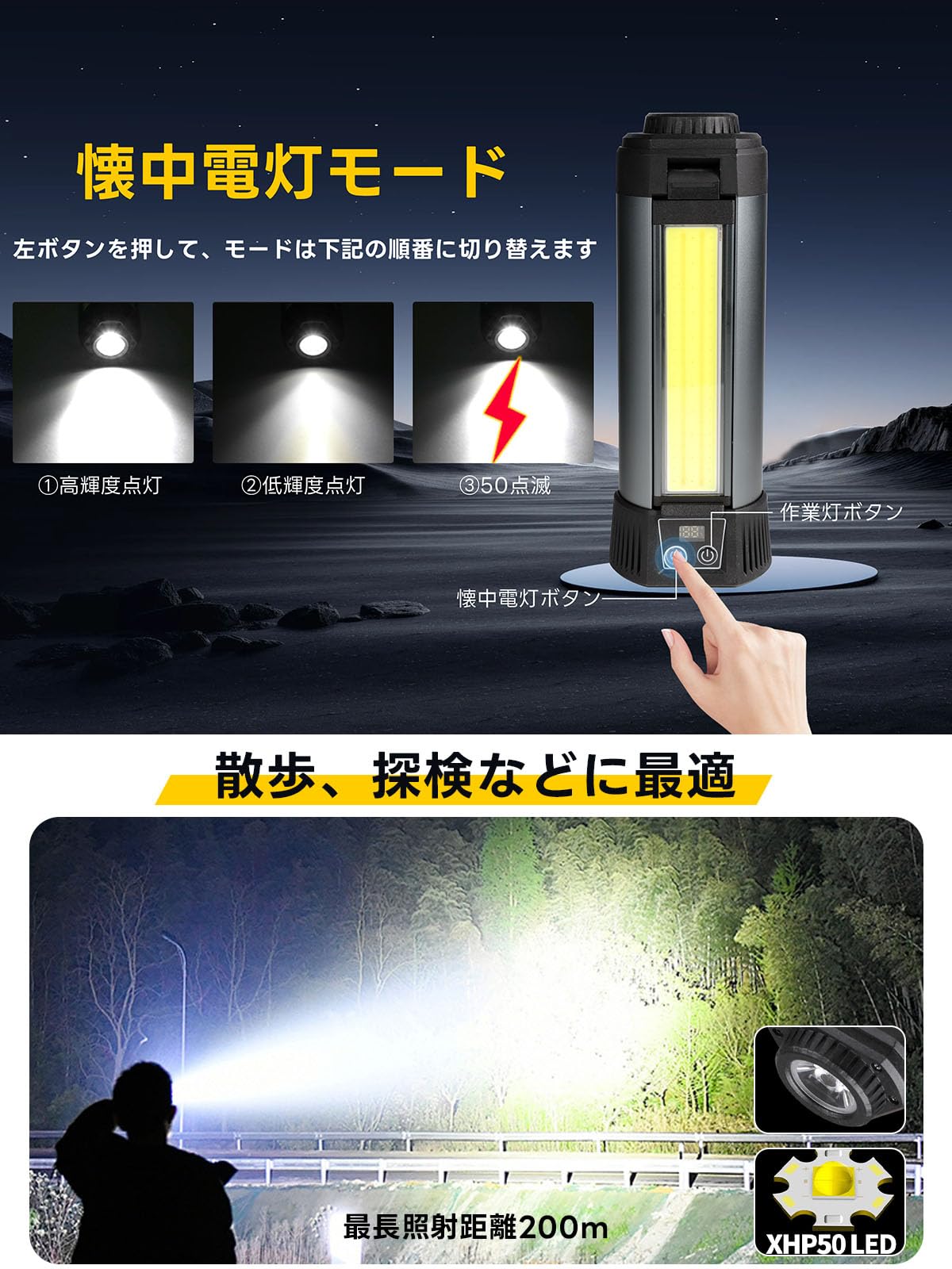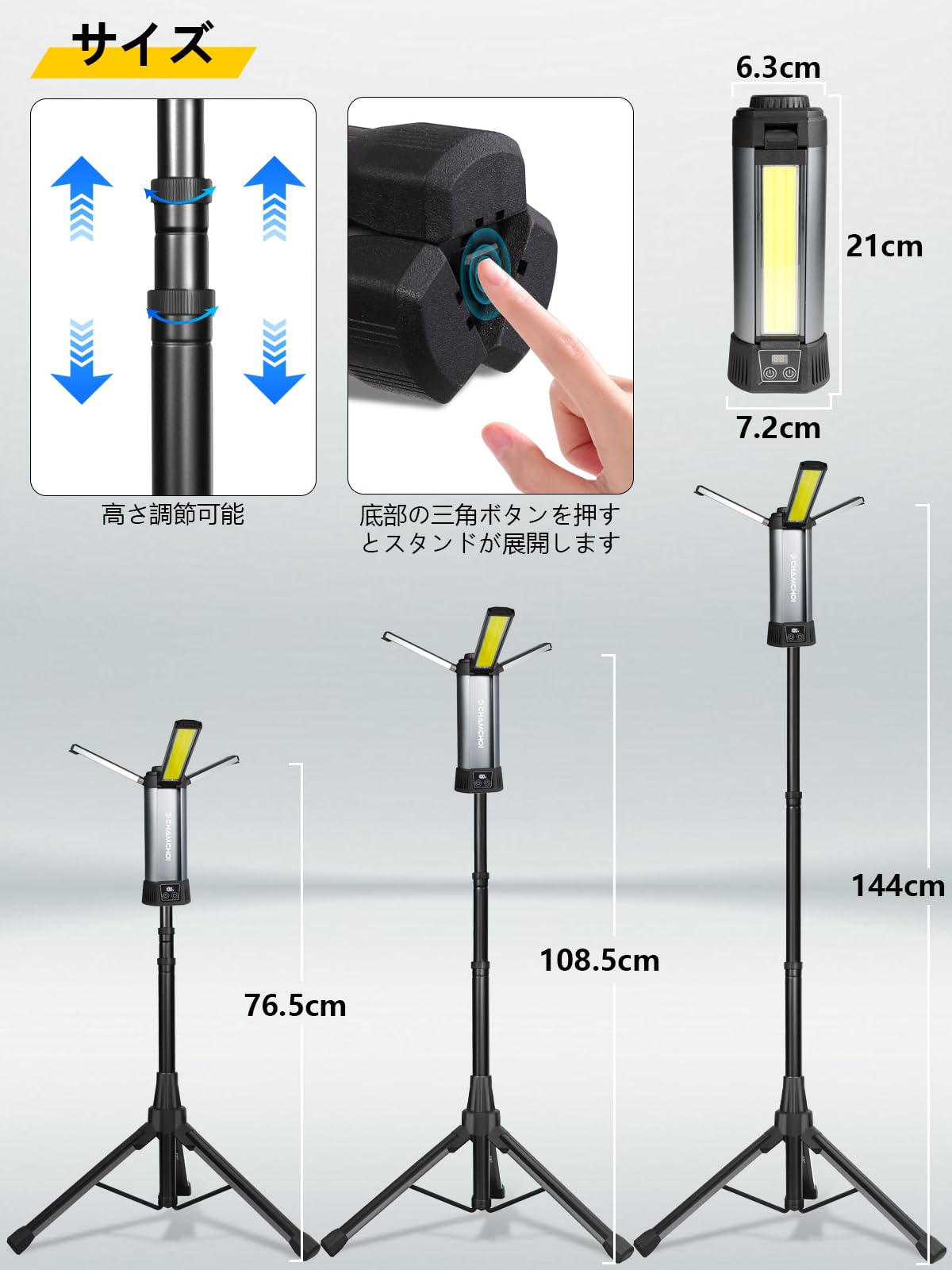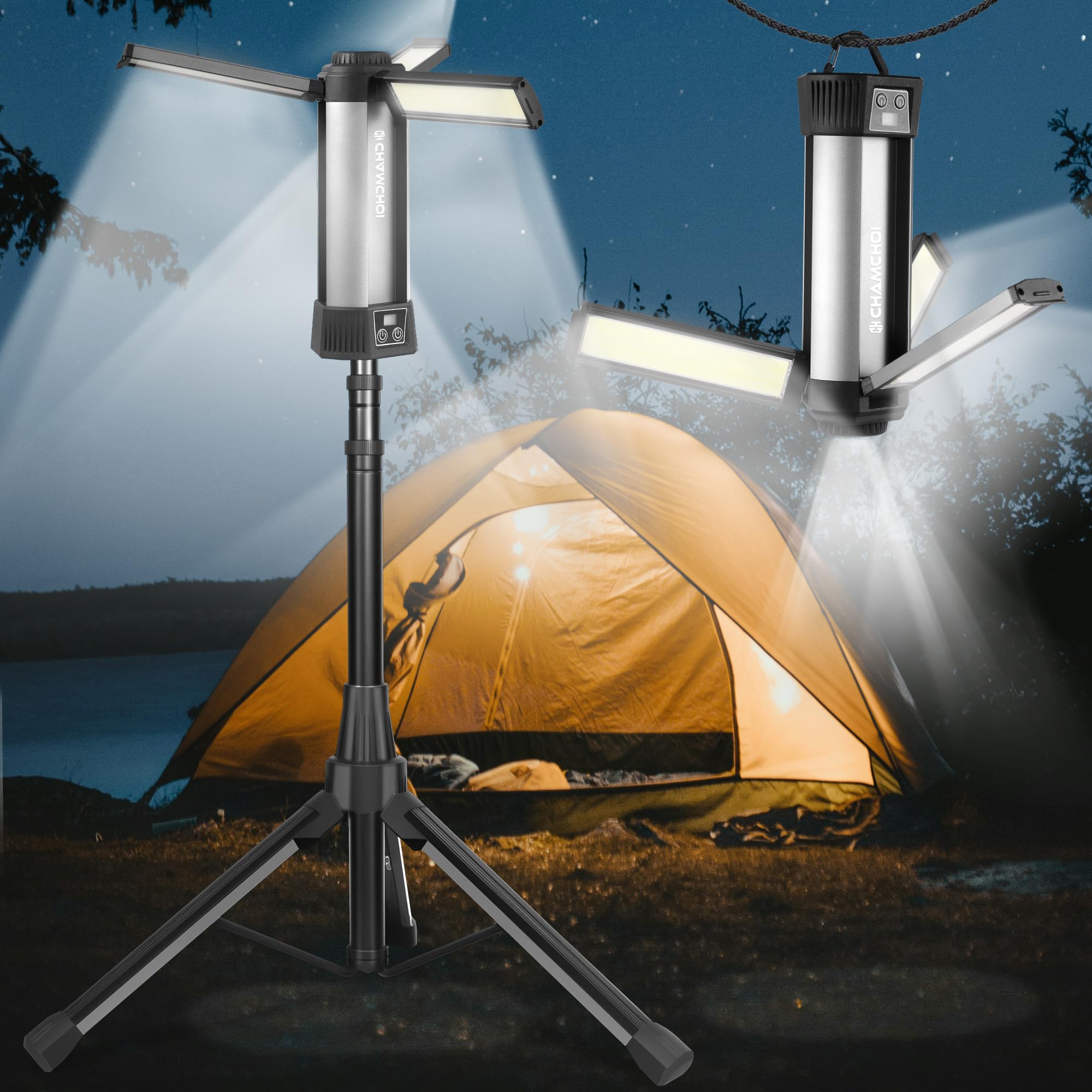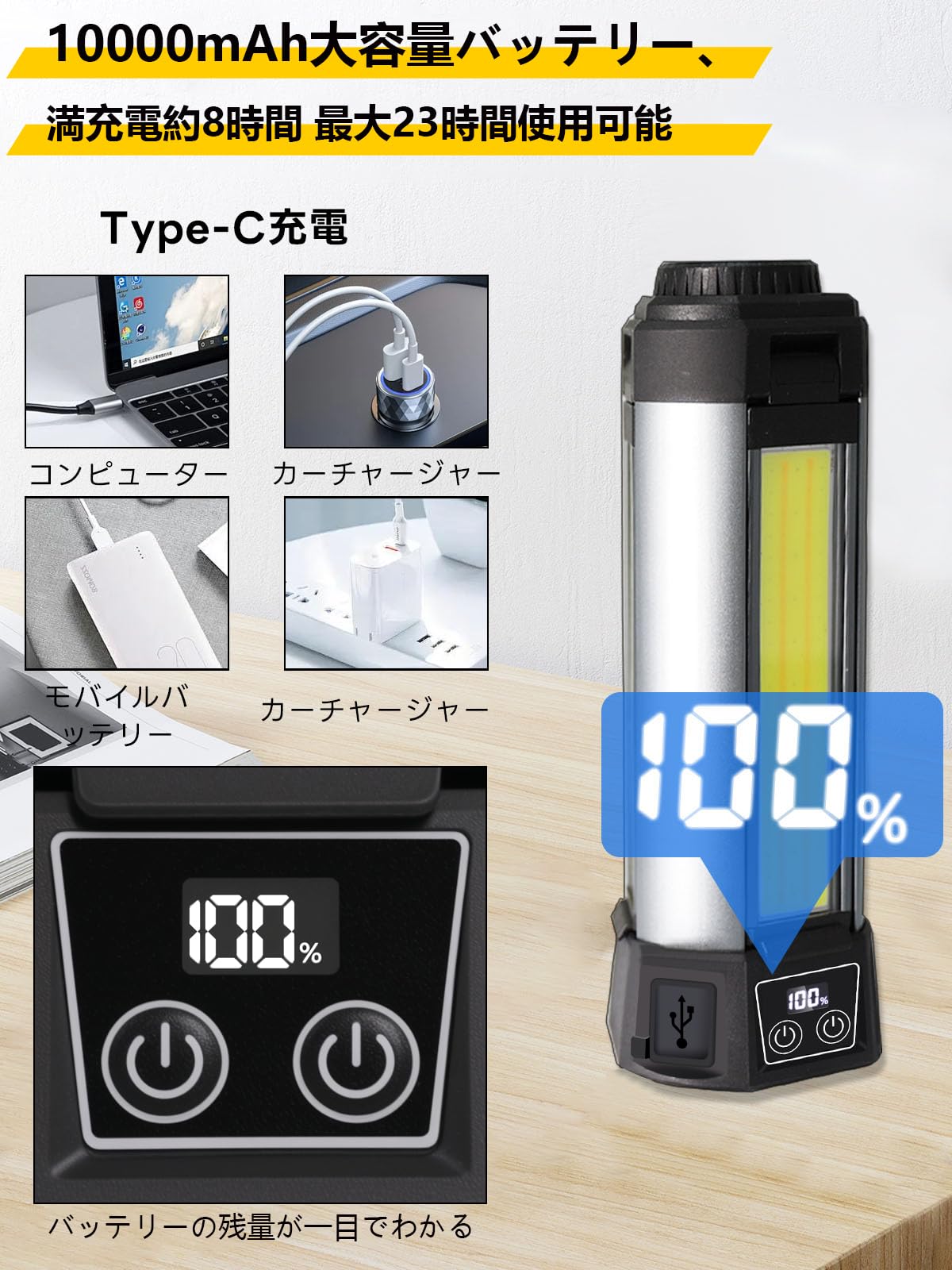 led作業灯 アップグレード版三脚付き 10000mAh大容量 10000LM 最大23時間連続点灯 ワークライト 10点灯モード 4色切り替え 屋外用 Type-c充電 270度方向調整 懐中電灯機能 ライト ハンディライト 高度調節可能 屋外照明/集魚灯/夜間工事/駐車場灯/アウトドア/キャンプ/停電対策/緊急照明