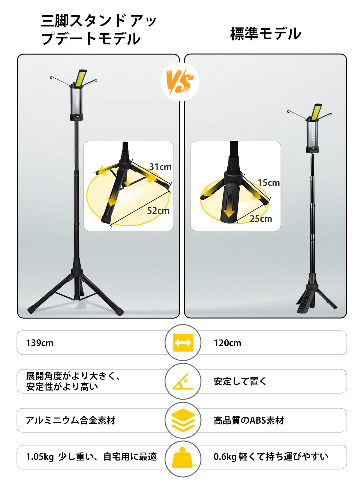 GoGonova 超高輝度10000lmLED投光器 作業灯/ワークライト 4000/7000K二段階調色 1500/5000/10000lm三段階調光 高度調節可能 スタンド付き投光器 野外照明/倉庫照明/夜間工事/夜間作業/アウトドア/キャンプ/地震/停電/緊急照明 IP54