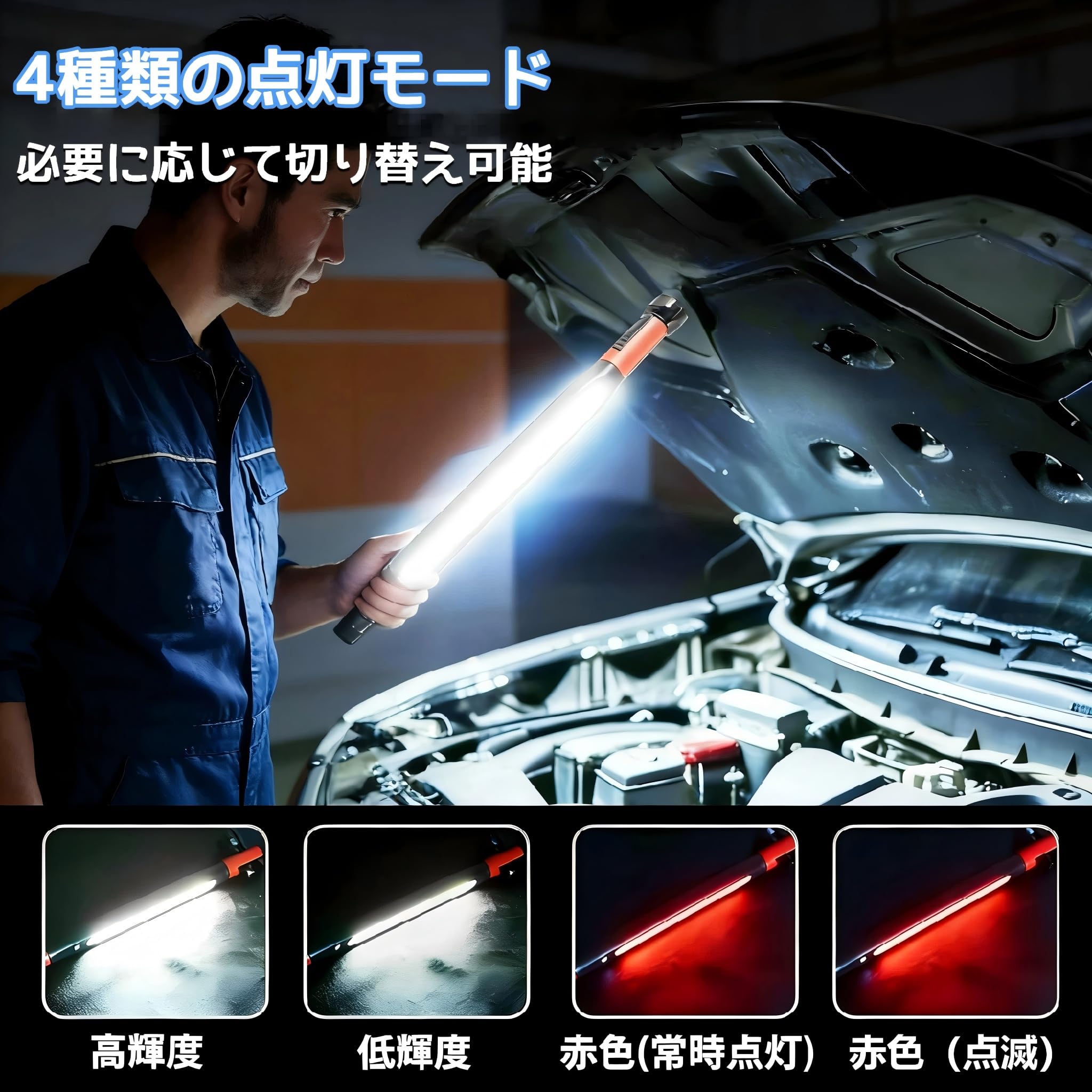 【2024新デザイン】作業灯 led 充電式 LEDライト キャンプ 5つ点灯モード 懐中電灯 大容量 USB 充電式 ランタン 折り畳み式 投光器 led 充電式 三段階調光 屋外ライト ハンディライト 現場用ライト マグネット付き 自動車整備/登山/アウトドア/夜間作業/キャンプ/夜釣り/防災/緊急照明/地震 フック&磁石付