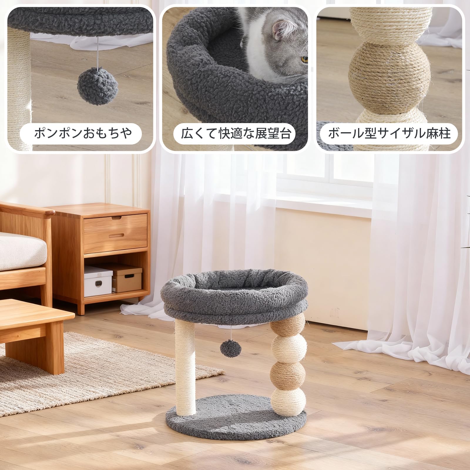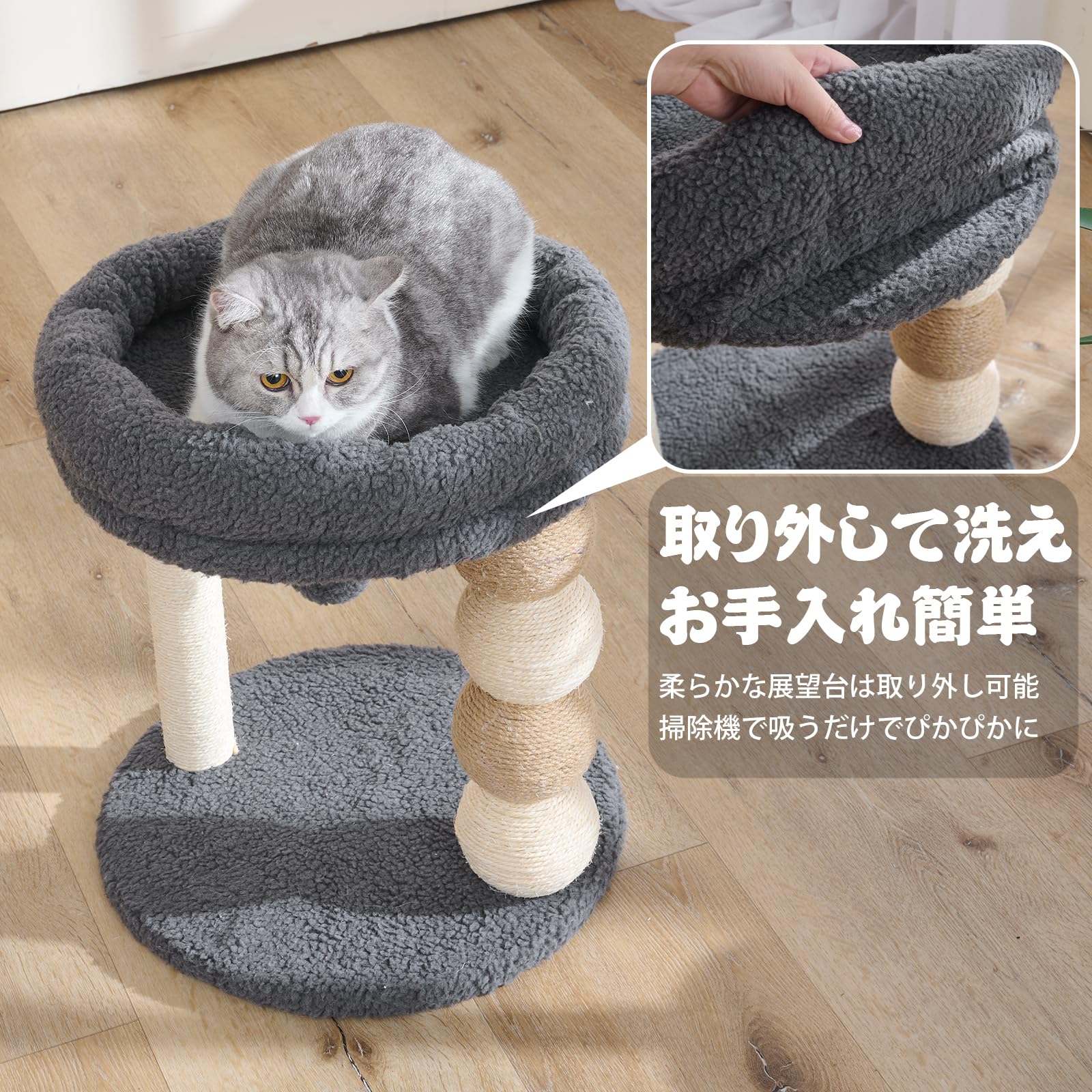PAWZ Road キャットタワー 猫タワー 大型猫適用 安定 クッション 取り外し 手入れ簡単 交換用フェルト付き 交換用ポンポン付き グレー