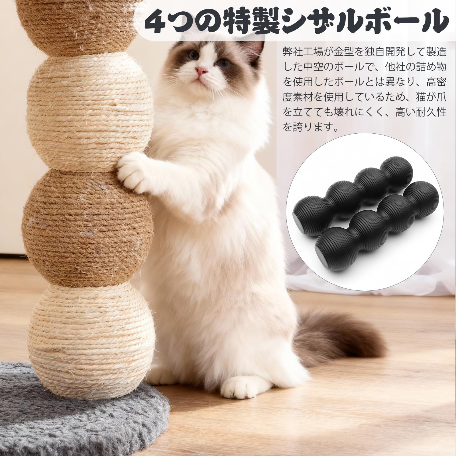 ECCIBOUN 4本セット M8 M10 猫 爪研ぎ ポール キャットタワー 交換用 支柱 替え 交換 麻柱 (40cm*4本, M10)