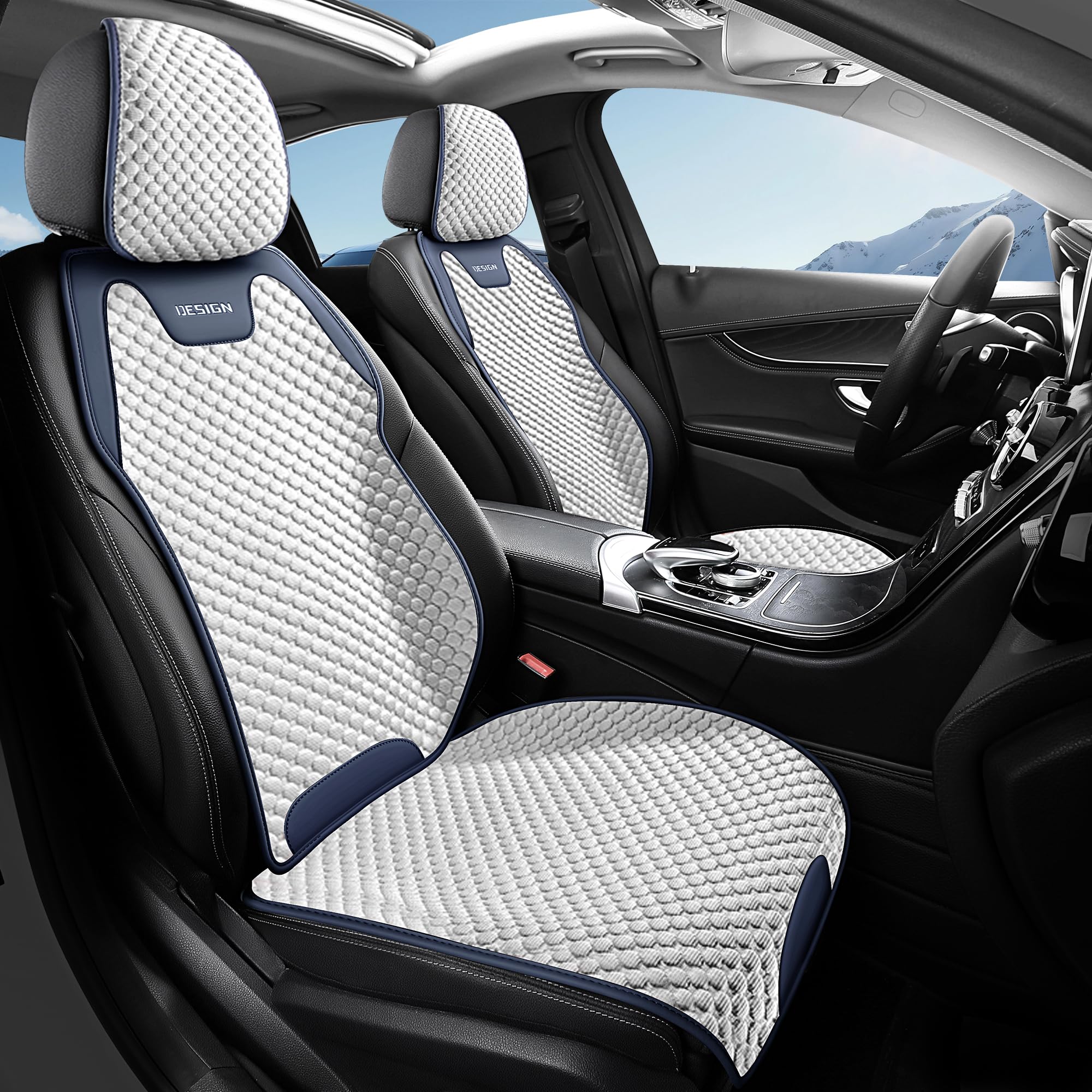 SIMGOO エプロン型 車用シートカバー 氷豆豆 防水・防汚 簡単取り付け ほとんどの車種対応 夏涼しく冬暖かい 通気性 撥水 (前席と後席, ブルーとホワイト)