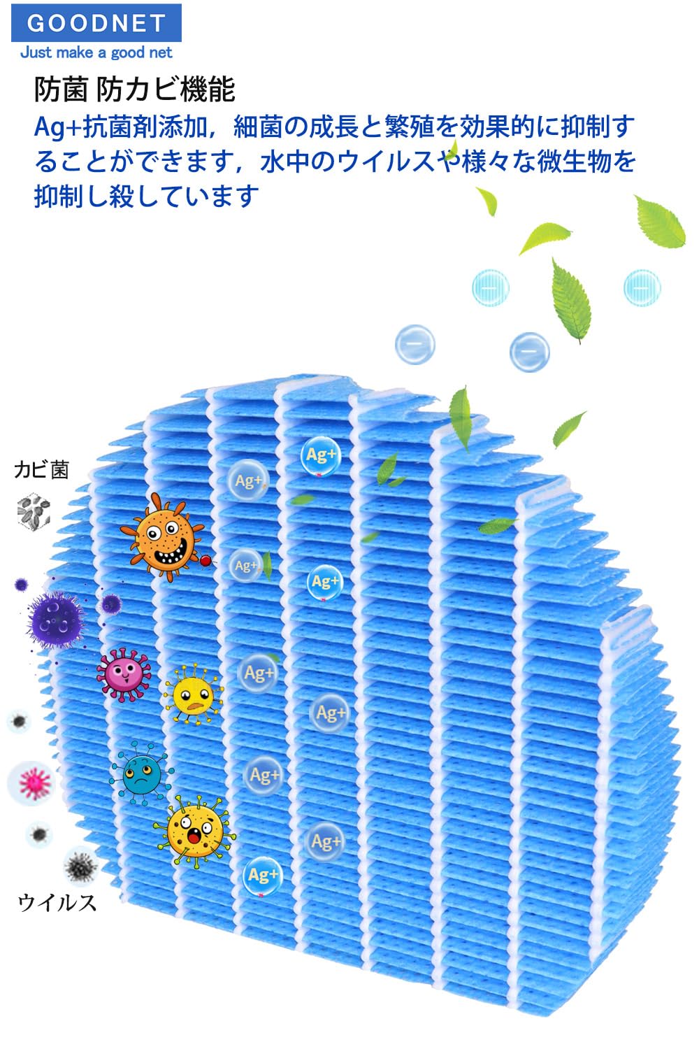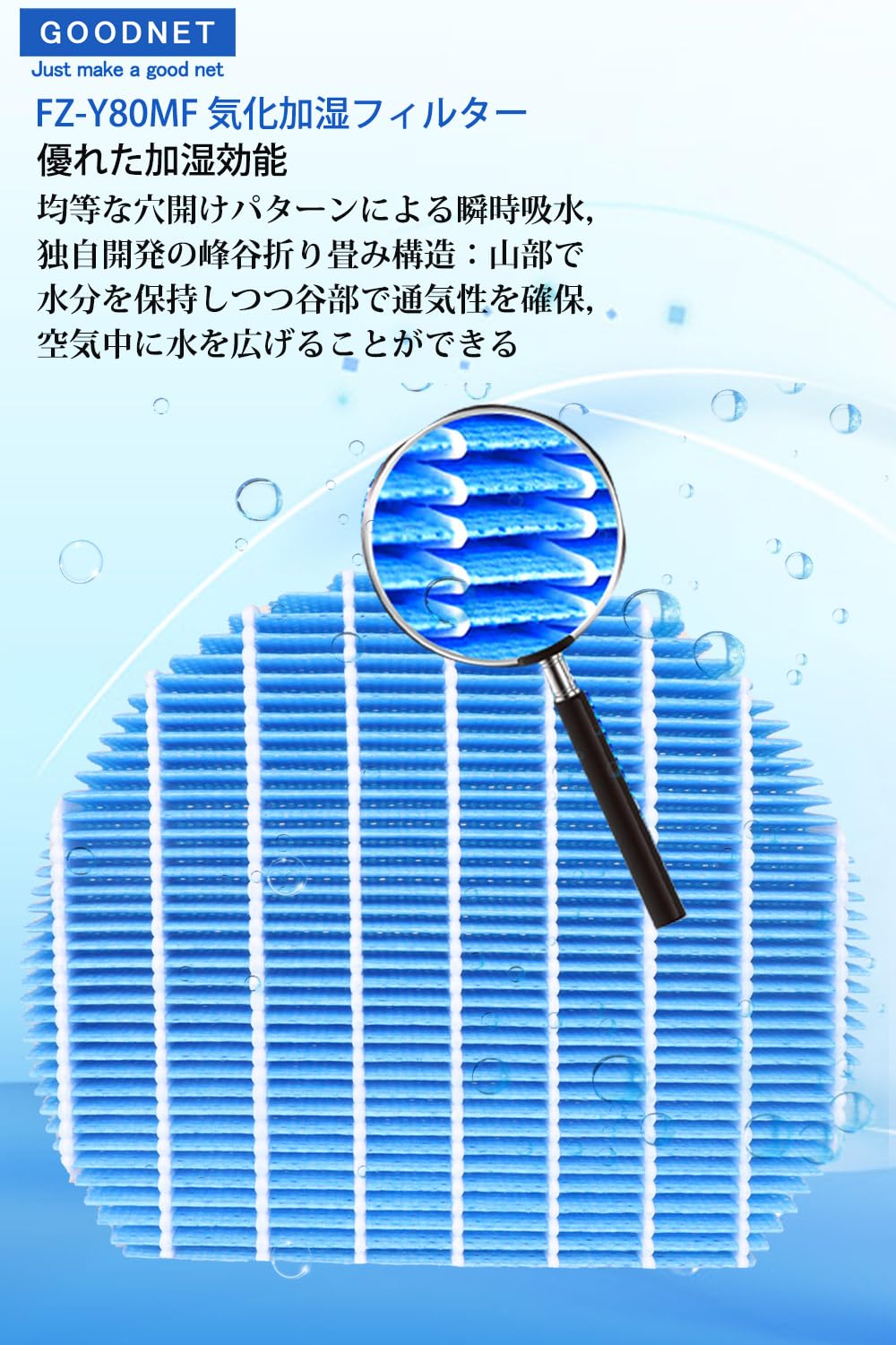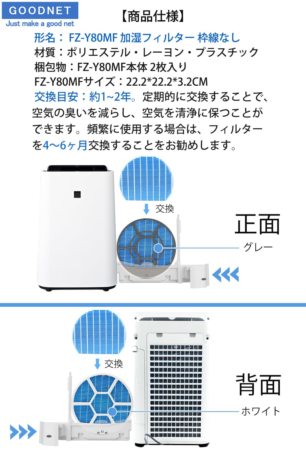 GOODNET FZ-Y80MF 加湿フィルター 枠線なし KC-A40 KC-A50 KC-D50 KC-E50 KC-B50 KC-N50 KC-F50 KC-G50 加湿器 互換 KC-L5 KC-J50 KC-J500 KC-50TH4 交換フィルター KC-G40 KC-H50 加湿空気空気清浄機 フィルター 互換品 2枚入り
