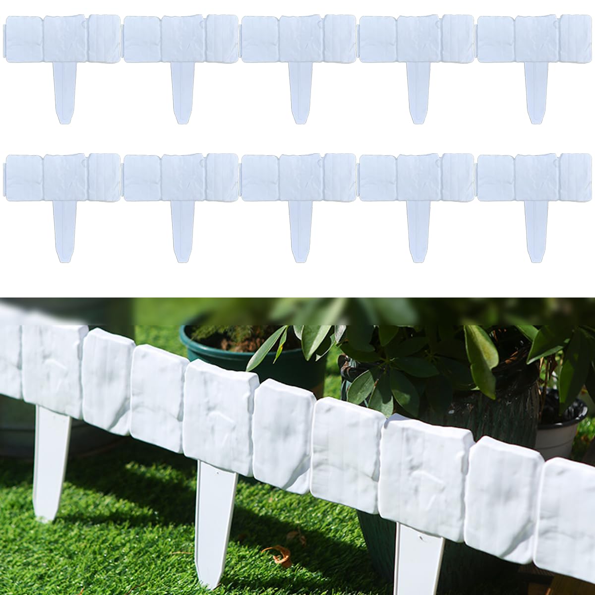 Lanito 花壇フェンス ガーデンフェンス 屋外 土留め 10枚セット 25cm×23cm 柵 ミニフェンス PVC 連結式 設置簡単 根止め 縁飾り つなぎ垣根 DIY庭造り 造園 取り外し可能 園芸用 (白)