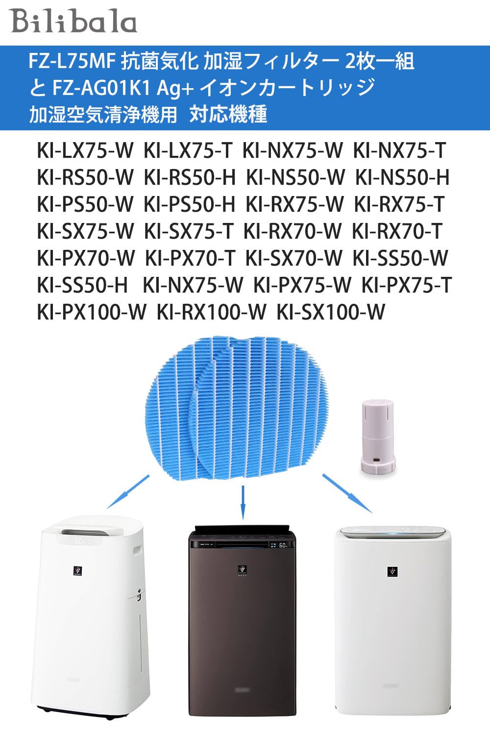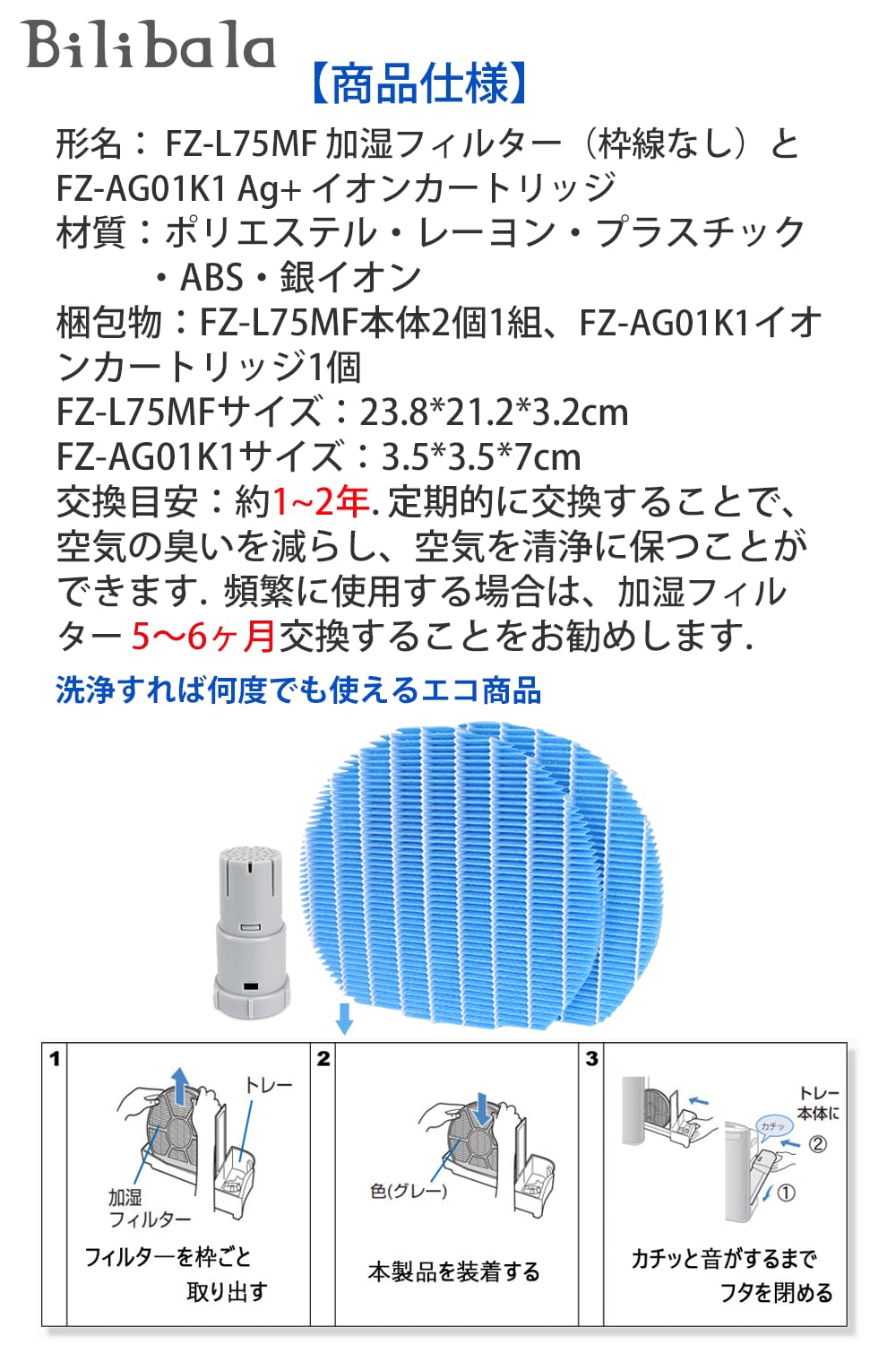 Bilibal FZ-L75MF 加湿フィルター KI-LX75 KI-PX75 KI-RX75 KI-NS50 KI-RS50 KI-NS50 KI-RX70 KI-PX70 加湿空気清浄機用 フィルター 枠なし と FZ-AG01K1 Ag+ イオンカートリッジ 抗菌99.9%以上 2点セット
