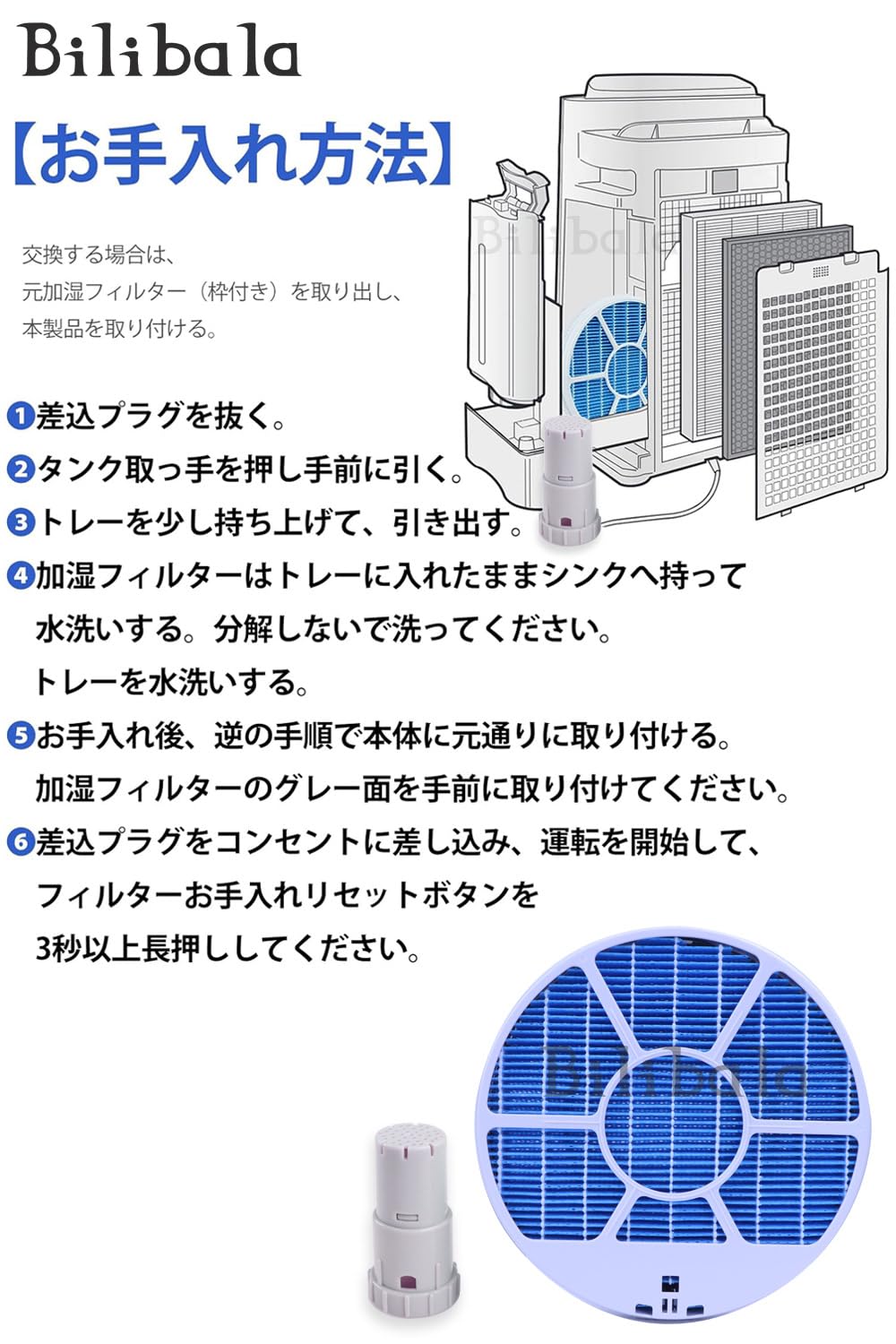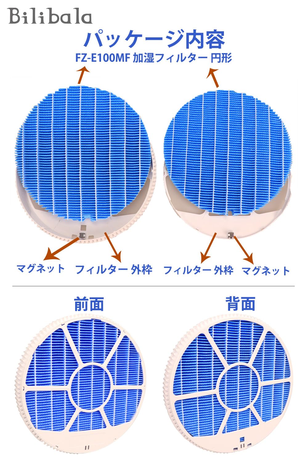 Bilibala FZ-E100MF 加湿フィルター (枠付き) KI-LS70 KI-NS70 KI-LP100 KI-NP100 KI-JP100 KI-GX100 KI-FX100 加湿空気清浄機用 フィルター と FZ-AG01K1 Ag+ イオンカートリッジ リニューアル版 抗菌 99.9%以上 2点セット
