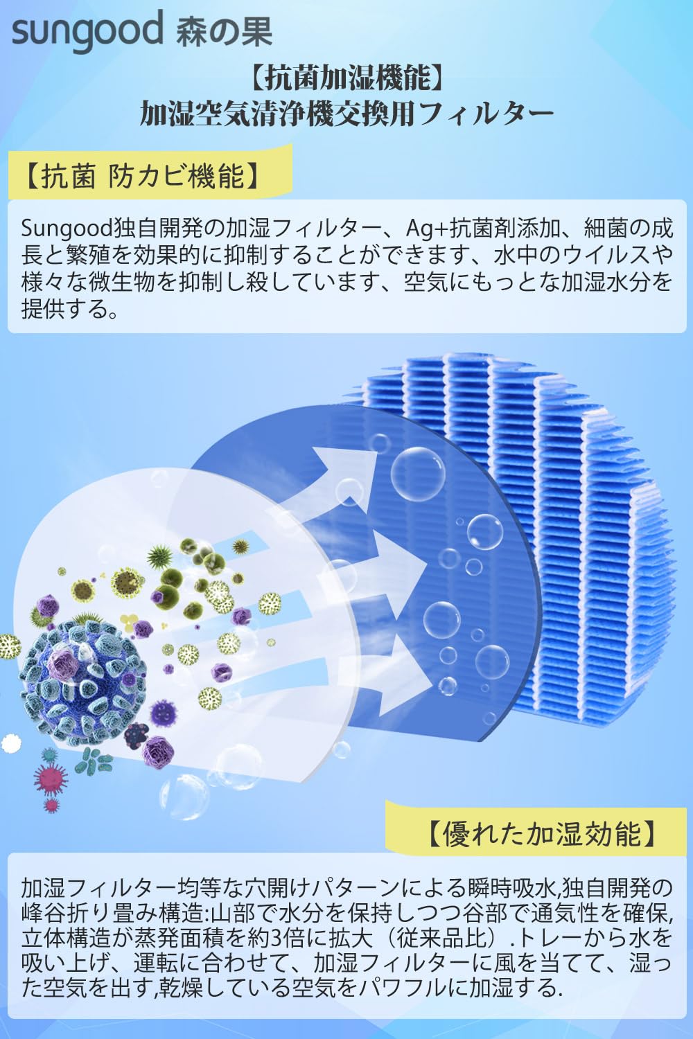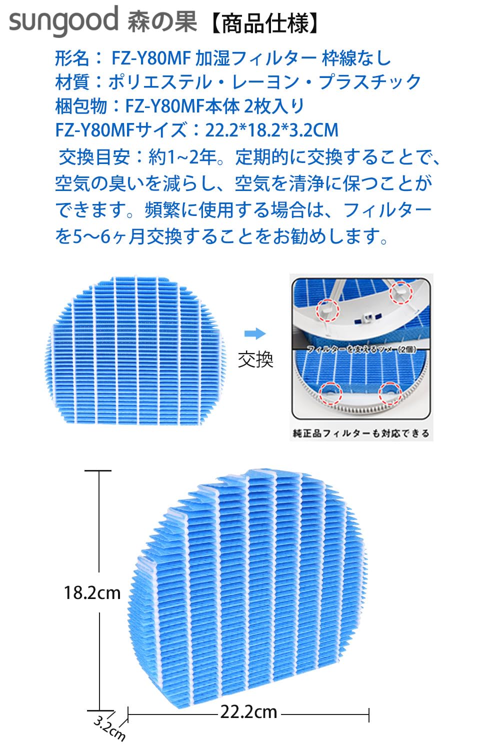 Sungood FZ-Y80MF 加湿フィルター KC-A40 KC-A50 KC-D50 KC-E50 フィルター KC-B50 KC-N50 KC-F50 KC-G50 KC-L5 KC-J500 互換 KC-H50 KC-50TH4 KC-G40 KC-D70 KC-F70 加湿空気清浄機用 フィルター 互換品 2枚入り