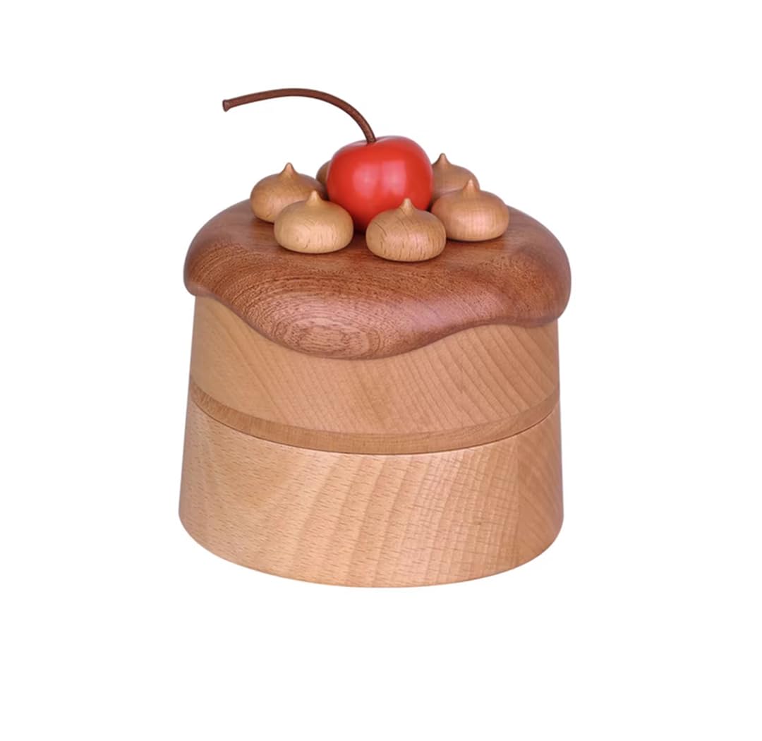 Sakulaya 木製 ジュエリーボックス 可愛い アクセサリー収納 インテリア ギフト用 チェリーケーキ型 二段式 小物入れ おしゃれ イヤリング 指輪 収納ケース プレゼント 木製の置物 (ケヤキ)