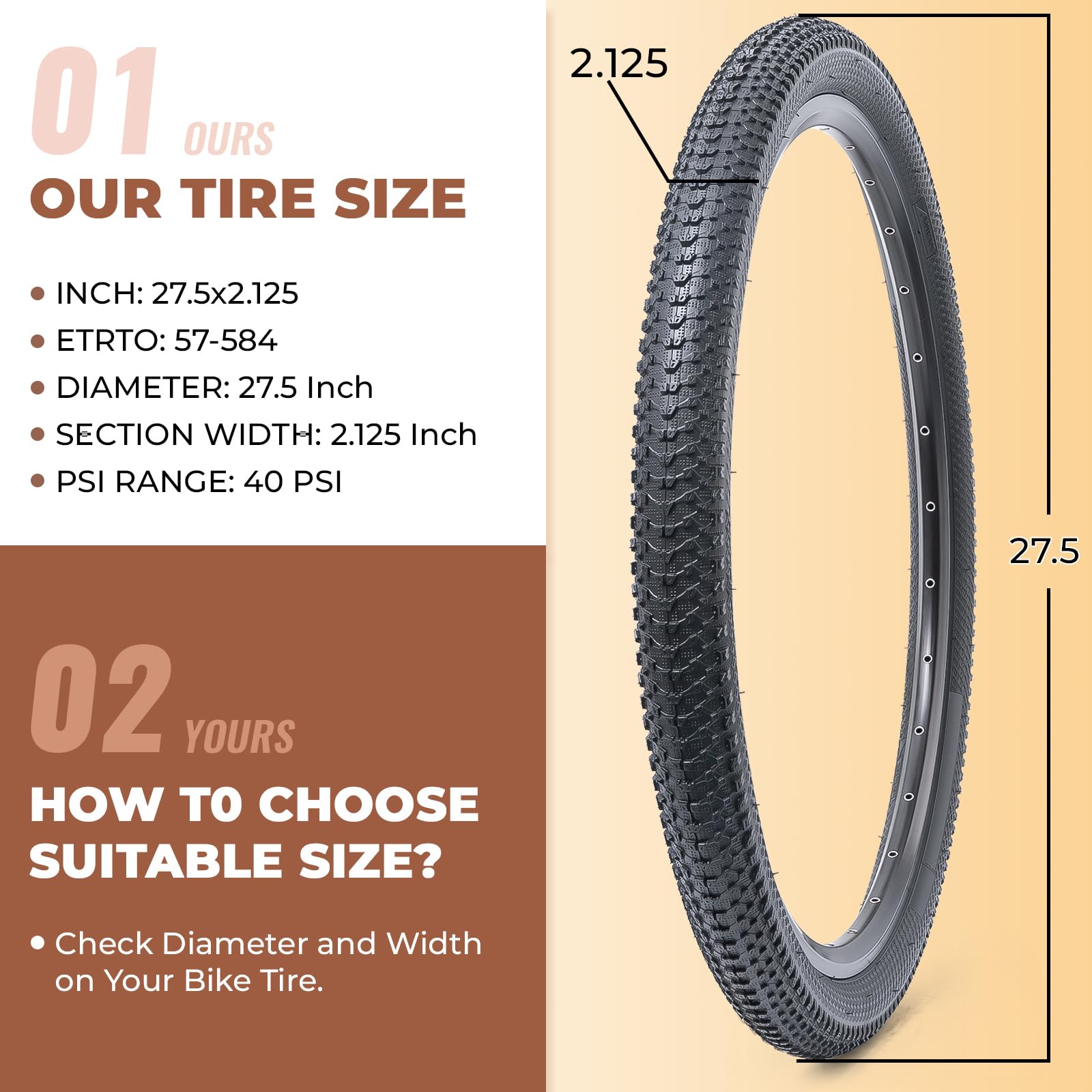 MetersGod 2本,27.5x2.125 自転車タイヤ,耐久性がある 折りたたみ 27.5インチ 57-584 27.5x2.125 マウンテンバイクタイヤ,マウンテンバイク クルージングバイク用のリプレイスメントタイヤ,クリンチャータイプ,MGW049