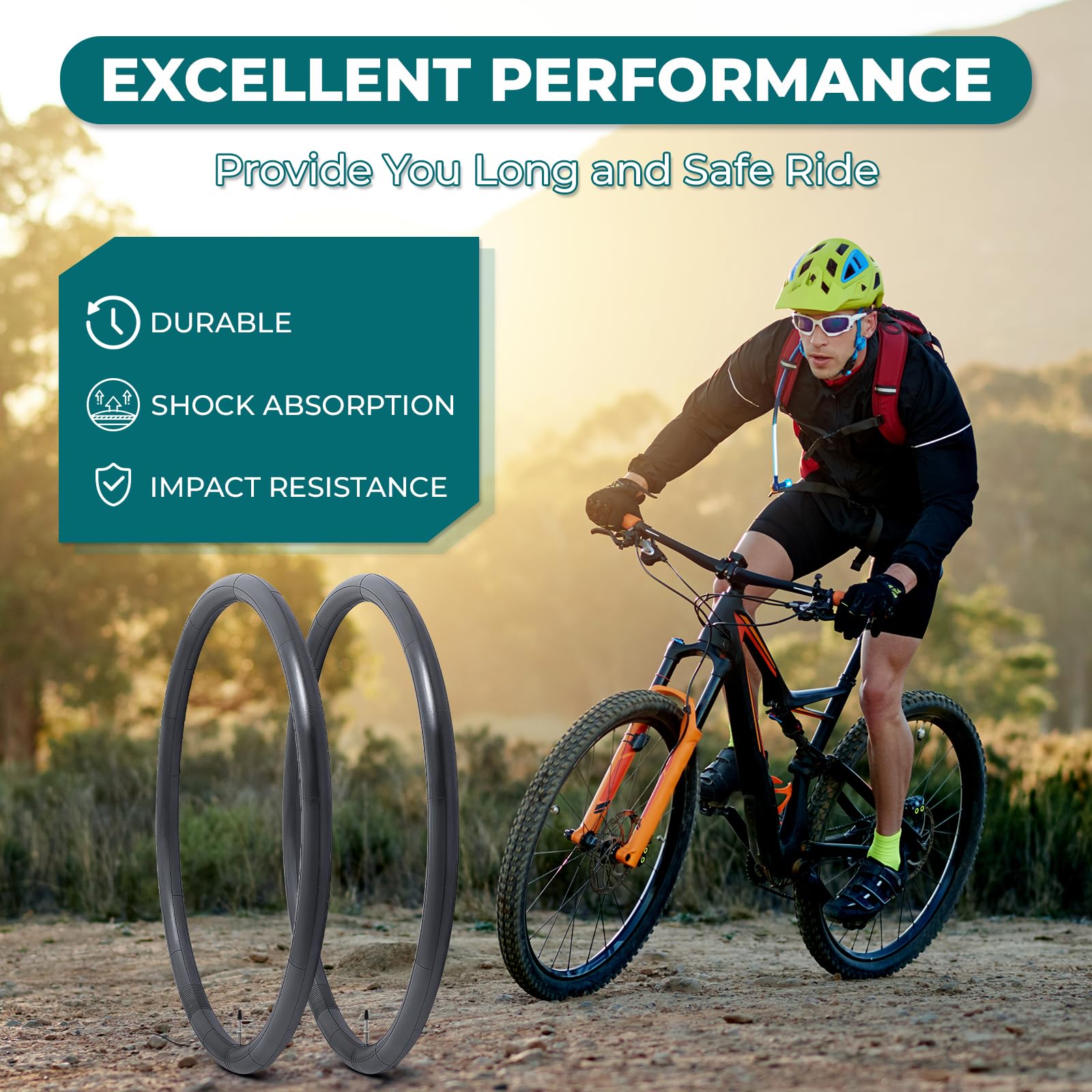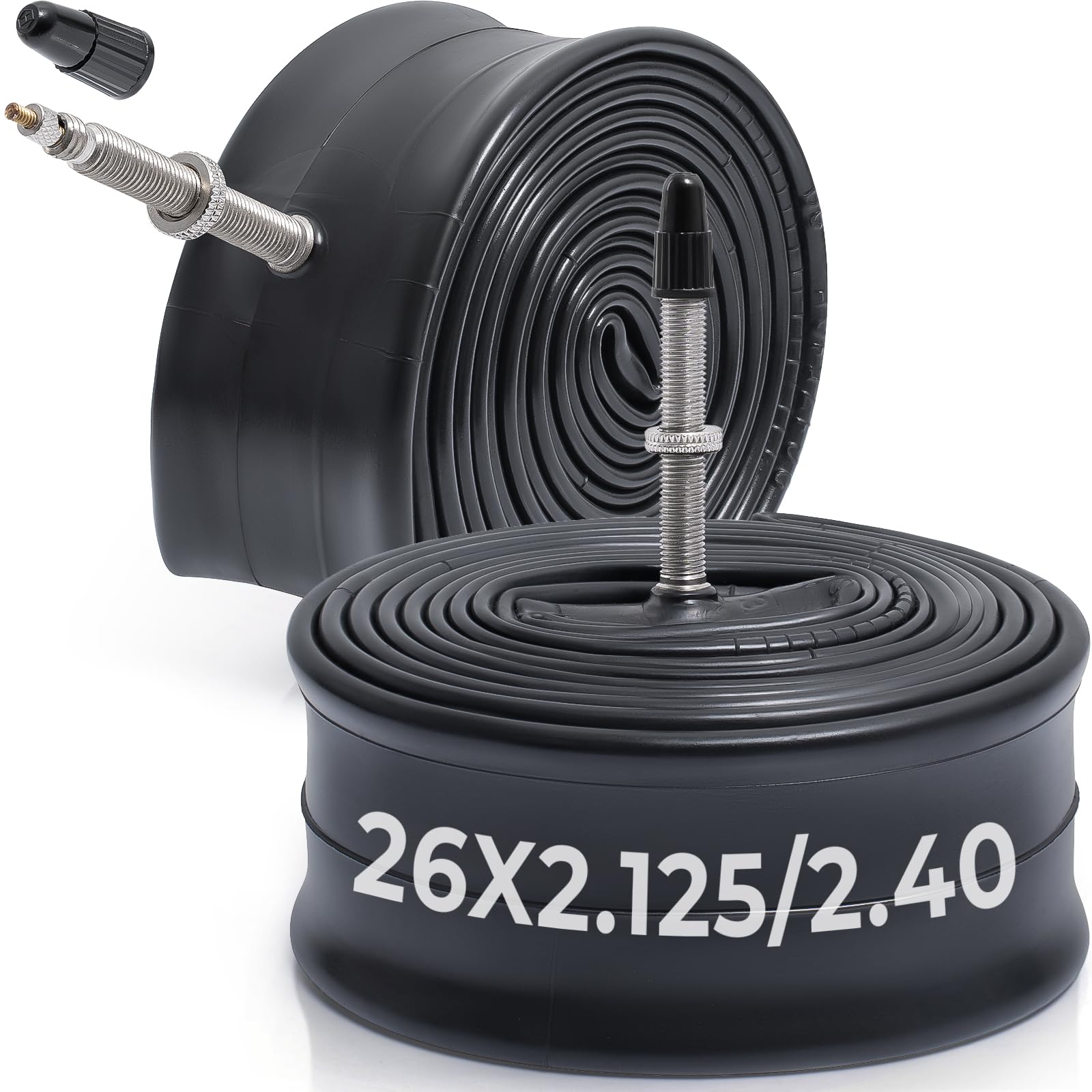MetersGod 2本,26x2.125/2.25/2.35/2.40 自転車チューブ,26x2.125-2.40 自転車タイヤに対応,仏式バルブ48mm,ブチルゴム,適用マウンテンバイク、クロスバイク、シティバイク,MGN022