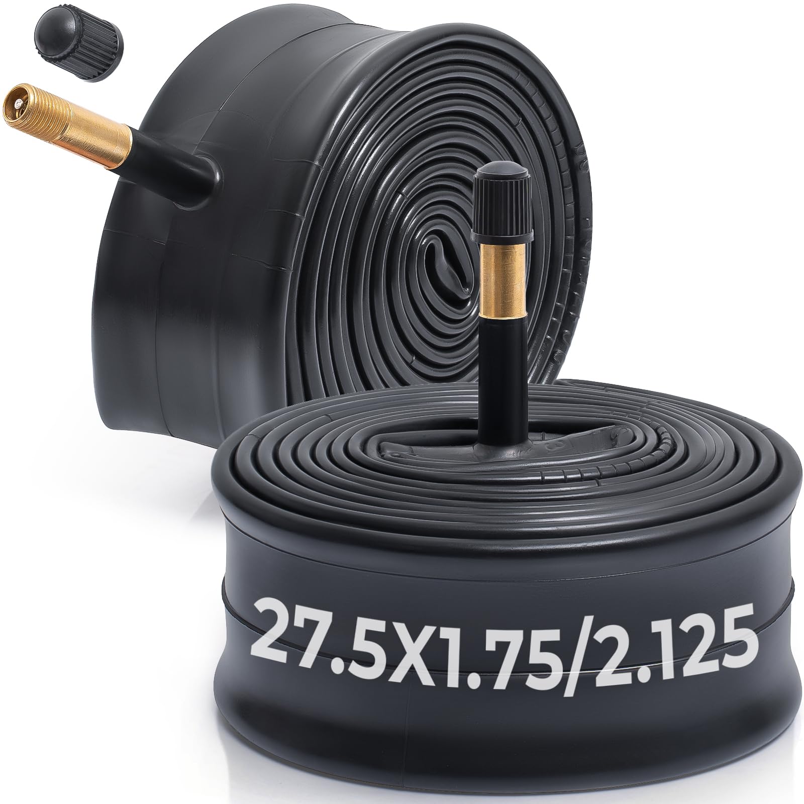 MetersGod 2本,27.5x1.75/1.95/2.0/2.10/2.125 自転車チューブ,27.5x1.75-2.125 自転車タイヤに対応,米式バルブ48mm,ブチルゴム,適用マウンテンバイク、クロスバイク、シティバイク,MGN011