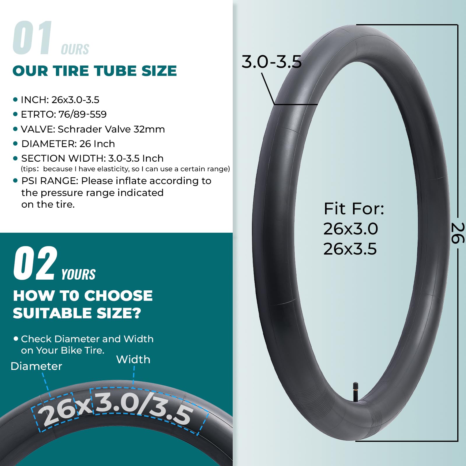 MetersGod 2本,26x3.0/26x3.5 自転車チューブ,26x3.0-3.5 自転車タイヤに対応,米式バルブ32mm,ブチルゴム,適用ファットバイク、シティバイク,MGN027