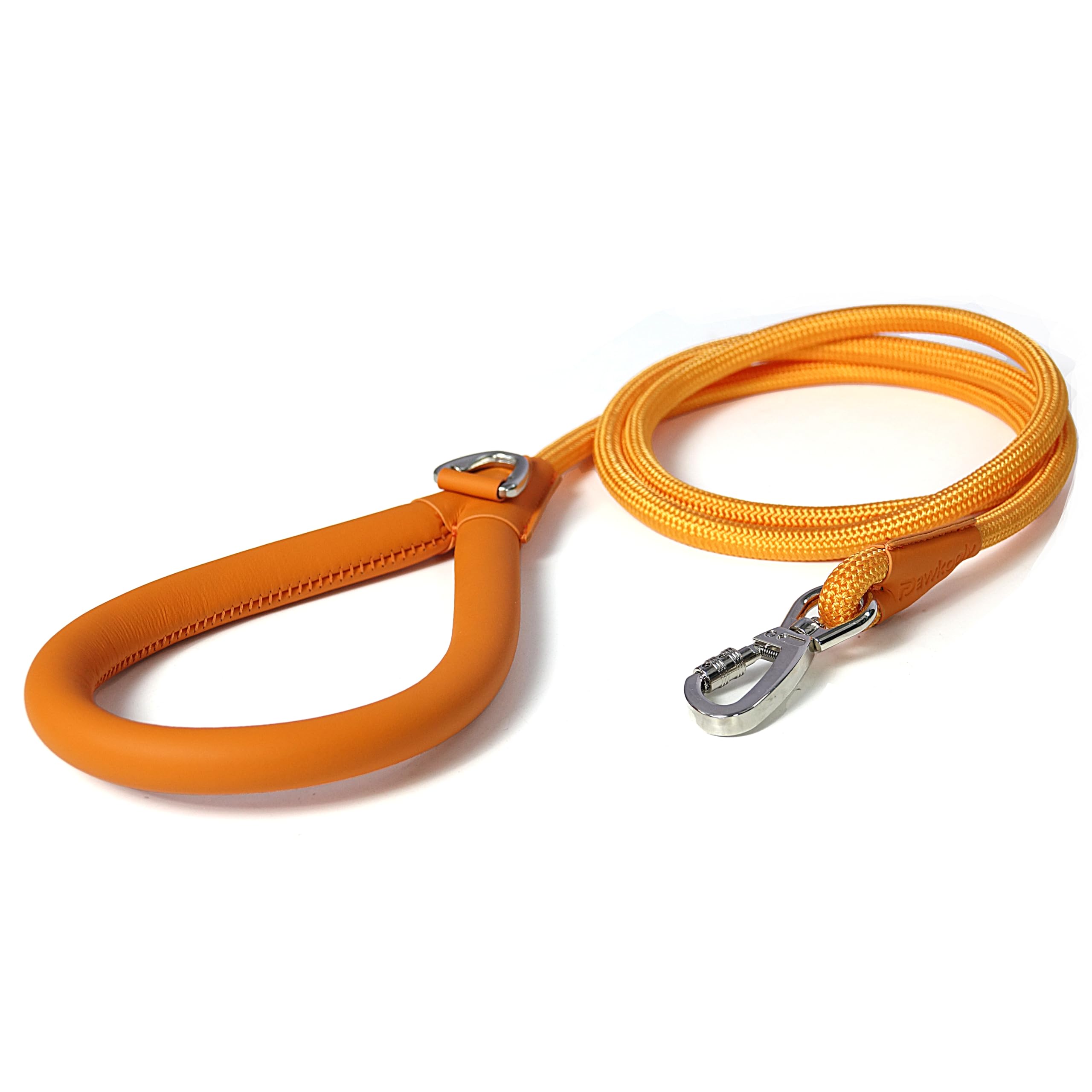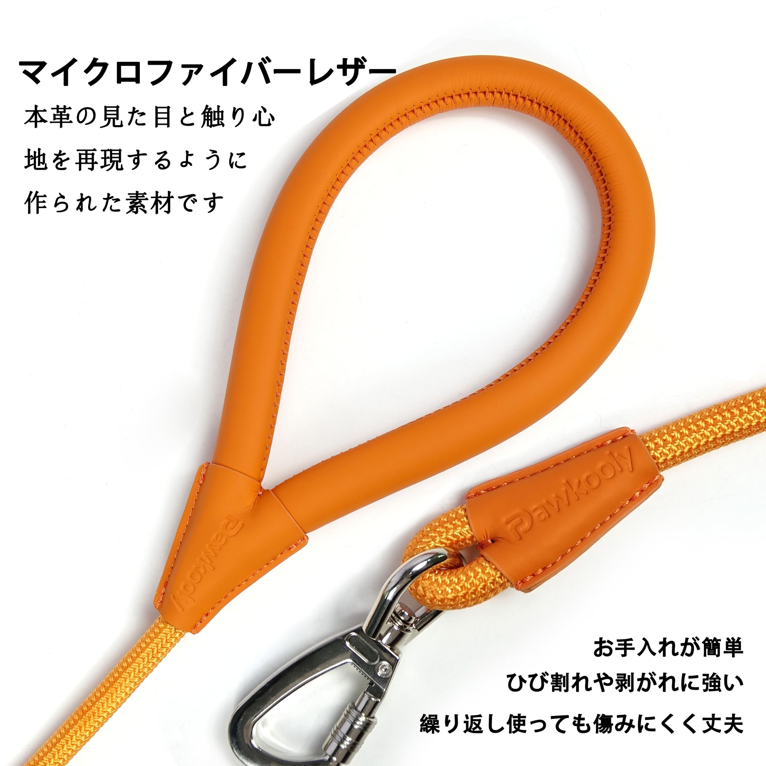 レザーハンドル 犬用リード 強化ナイロンロープ 中型・大型犬対応 ロングリード 快適グリップ 丈夫 散歩 トレーニング用 (オレンジ, 182cm)