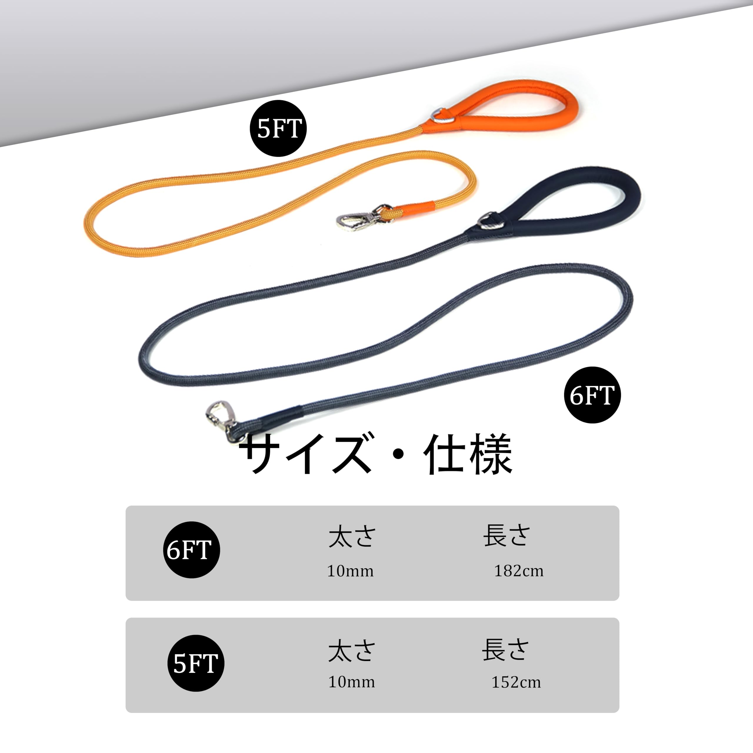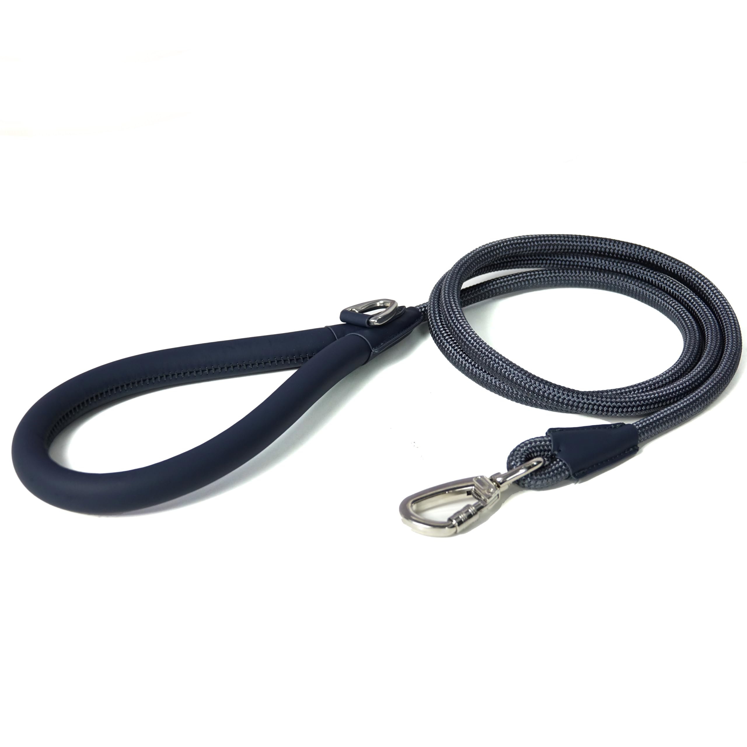 レザーハンドル 犬用リード 強化ナイロンロープ 中型・大型犬対応 ロングリード 快適グリップ 丈夫 散歩 トレーニング用 (ネイビー, 182cm)