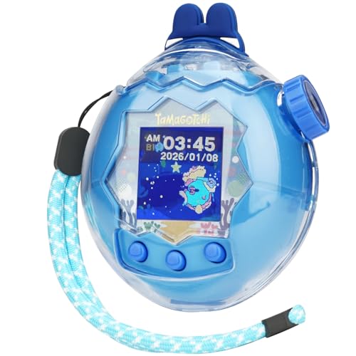 カバー 保護ケース 透明 PCハードケース 2点セット 本体カバー+デコキャップ 360度防衝撃 すり傷防止 全周囲保護 耐久性 防水 クリア カラフル ストラップ付き 対応 (ブルー耳)