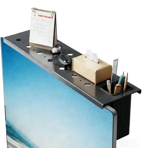 QIUNI スチール製 テレビ上部シェルフ 穴あけ不要 調整可能 サウンドバー/ルーター/ゲーム機/メディアボックス/リモコン用置き台 (1)