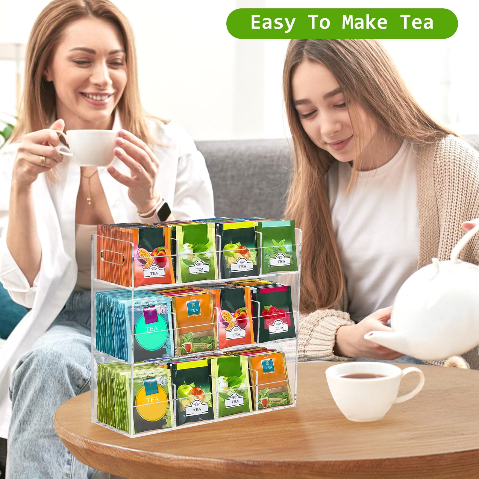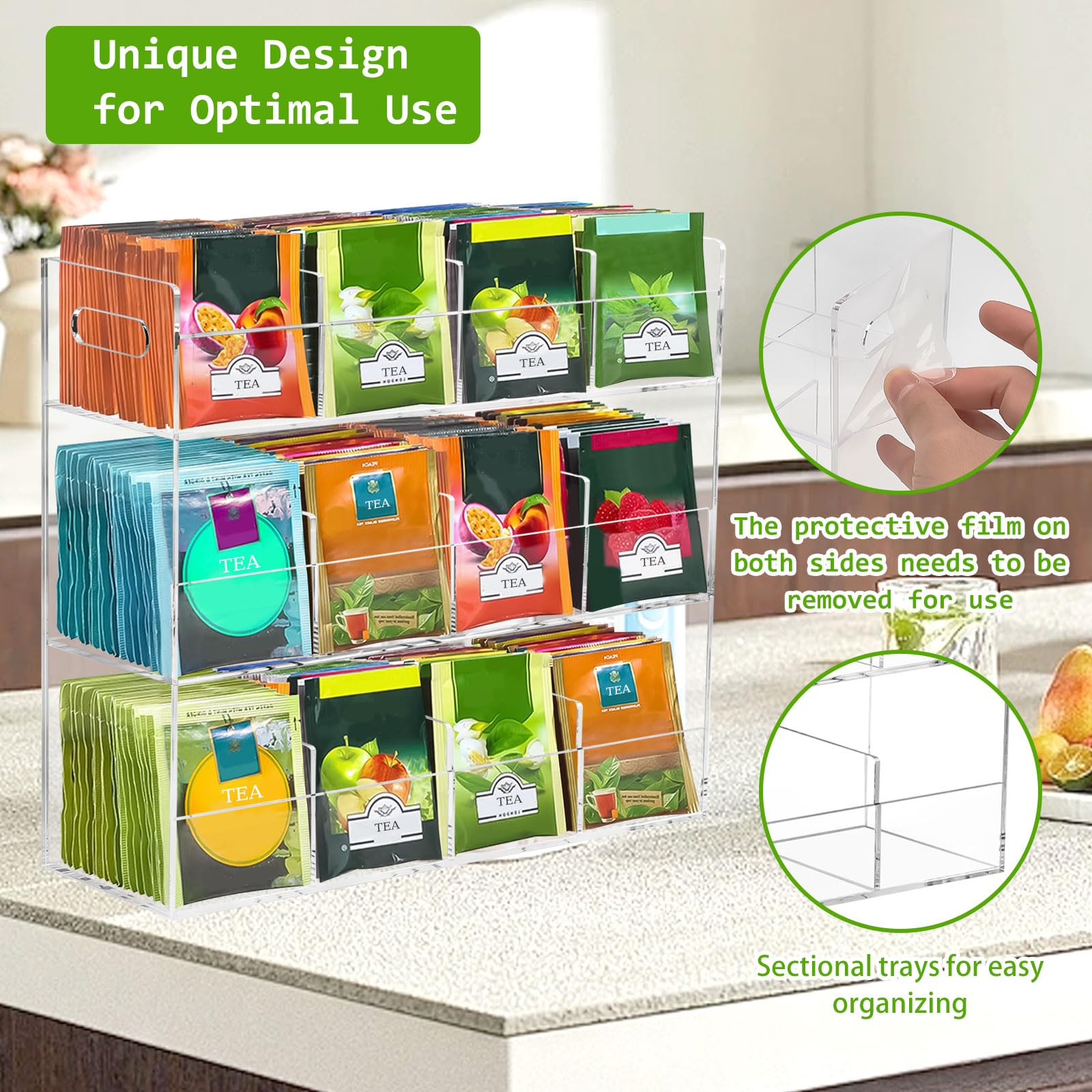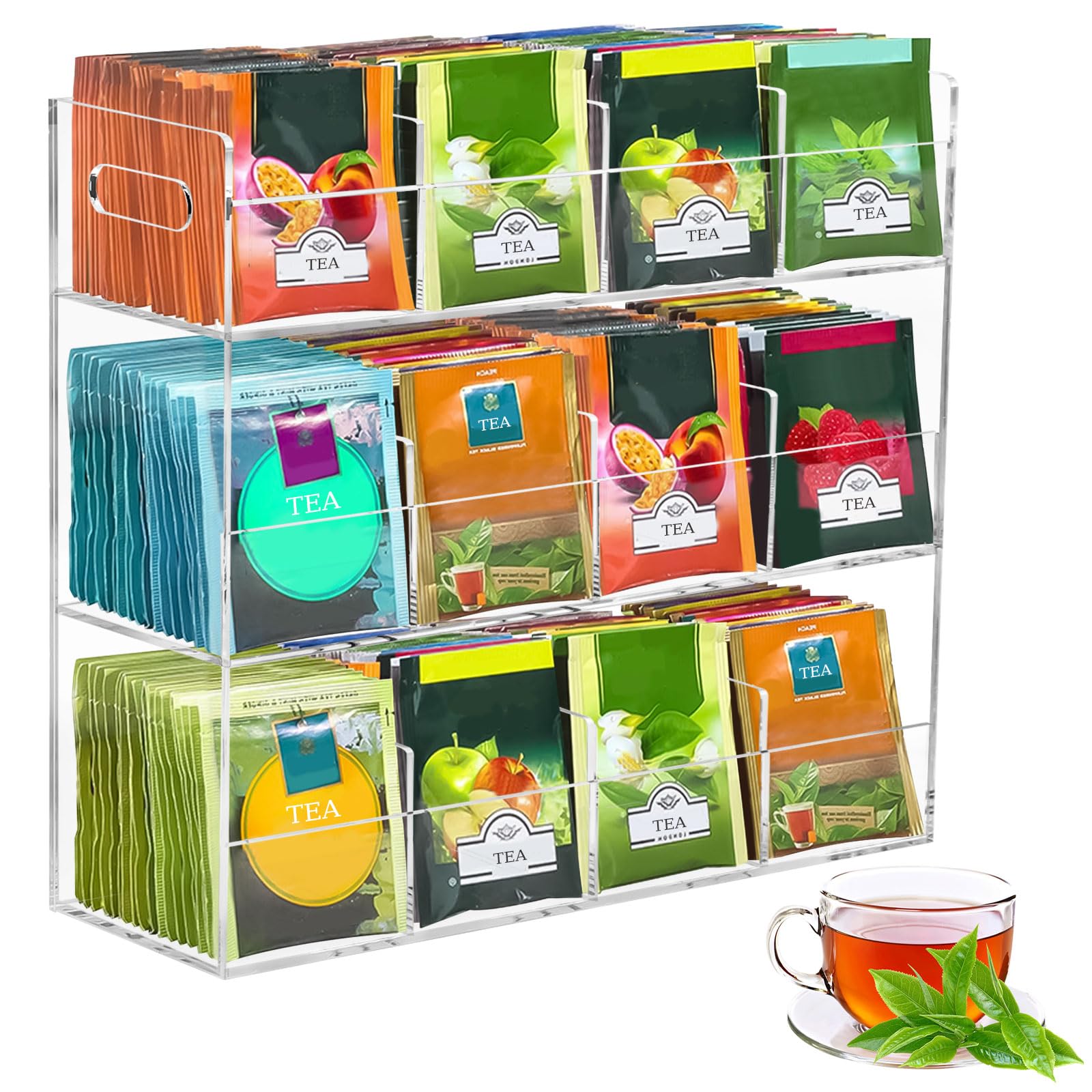 ティーバッグケース 3層 ティーバッグホルダー アクリルケース お茶 紅茶パック 透明 収納ボックス ティーボックス 12格仕切り コーヒーポッド/調味料/砂糖/化粧品 小物整理 収納ケース 大容量 縦型ティーバッグ収納ラック スナックラックホルダー