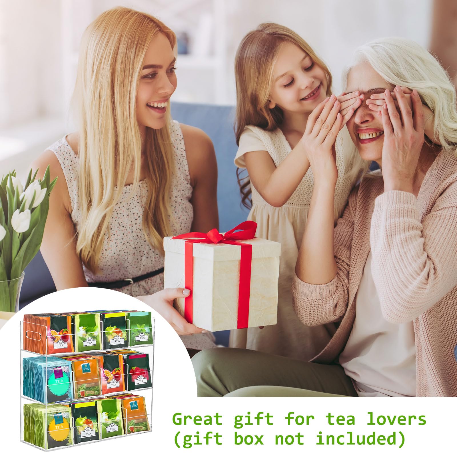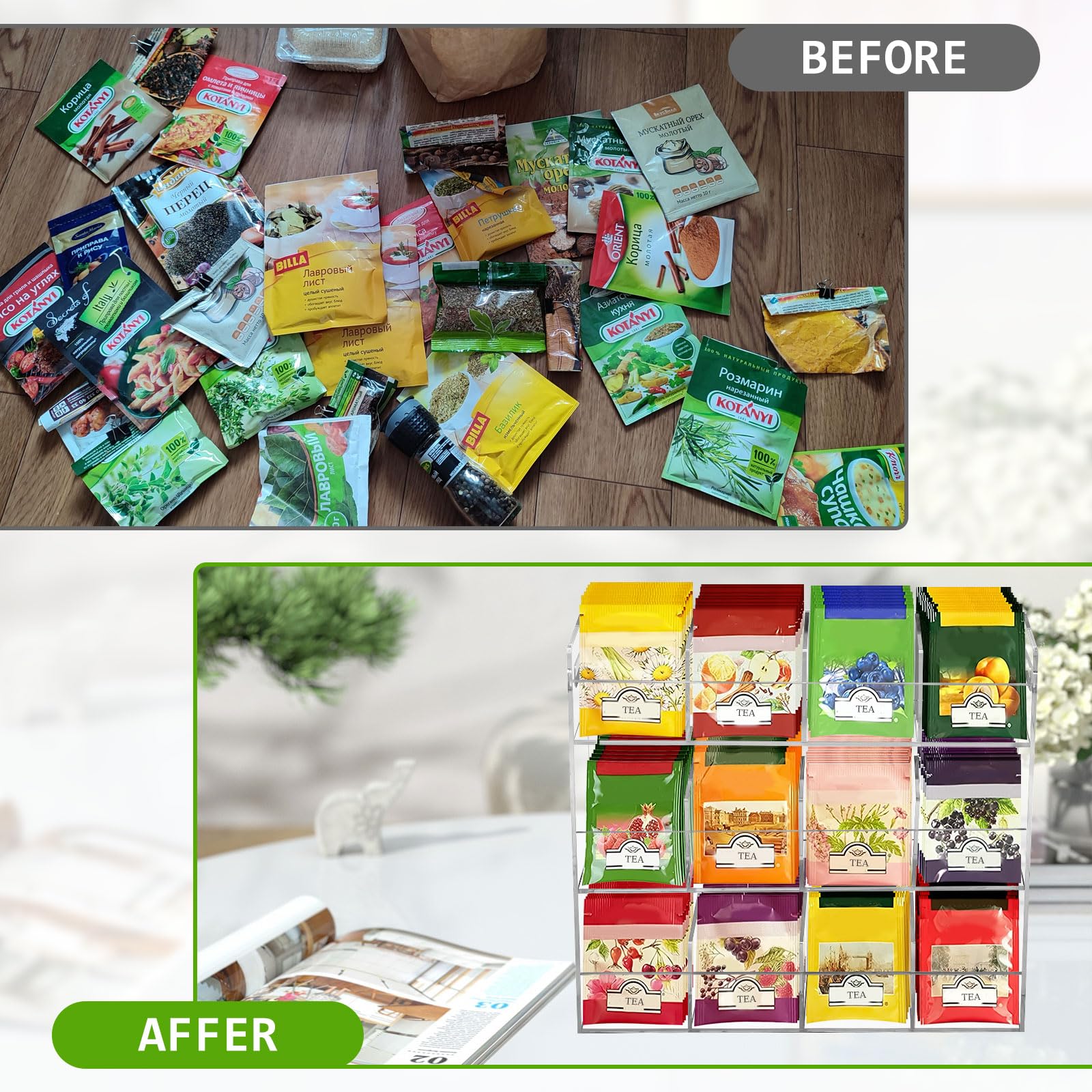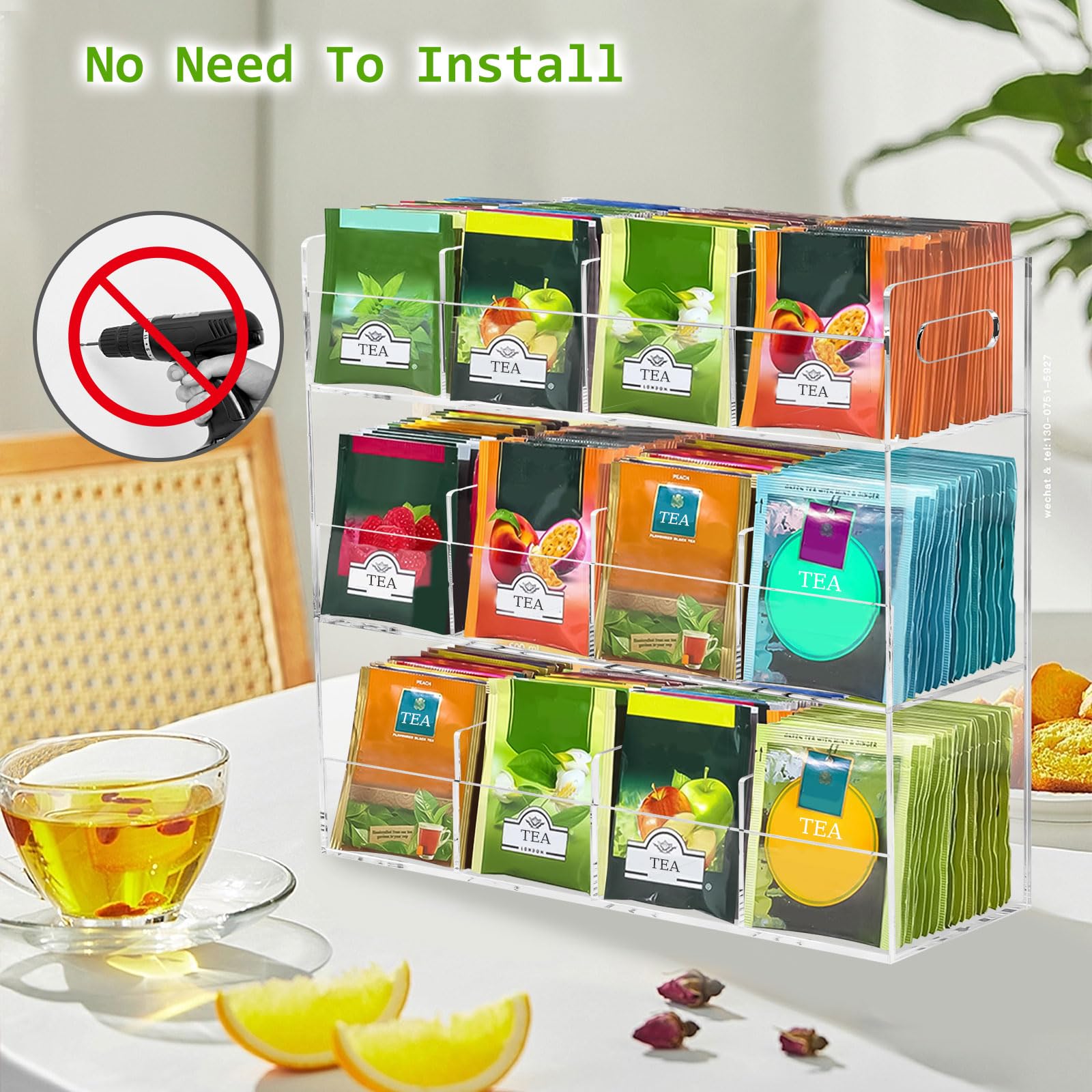 ティーバッグケース 3層 ティーバッグホルダー アクリルケース お茶 紅茶パック 透明 収納ボックス ティーボックス 12格仕切り コーヒーポッド/調味料/砂糖/化粧品 小物整理 収納ケース 大容量 縦型ティーバッグ収納ラック スナックラックホルダー