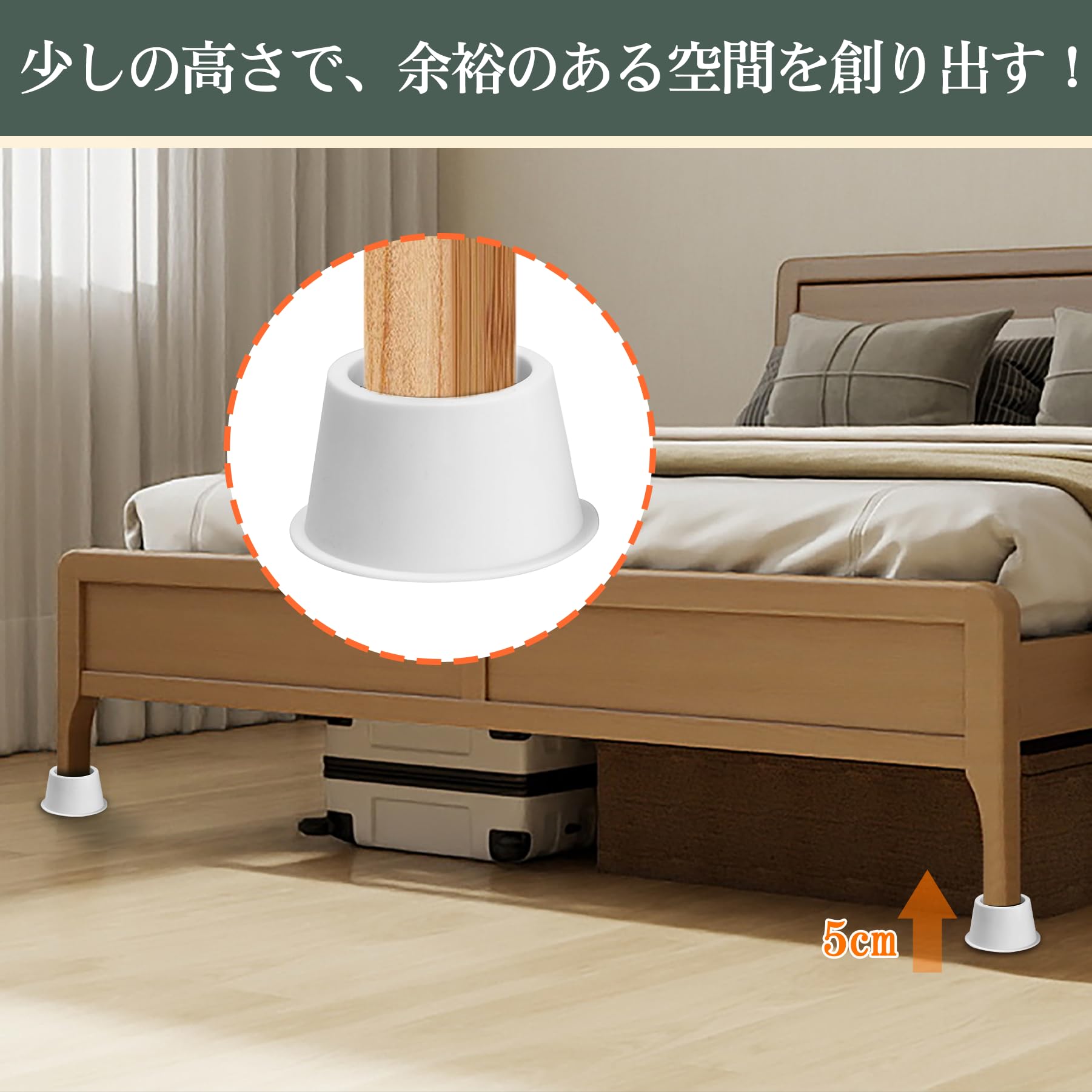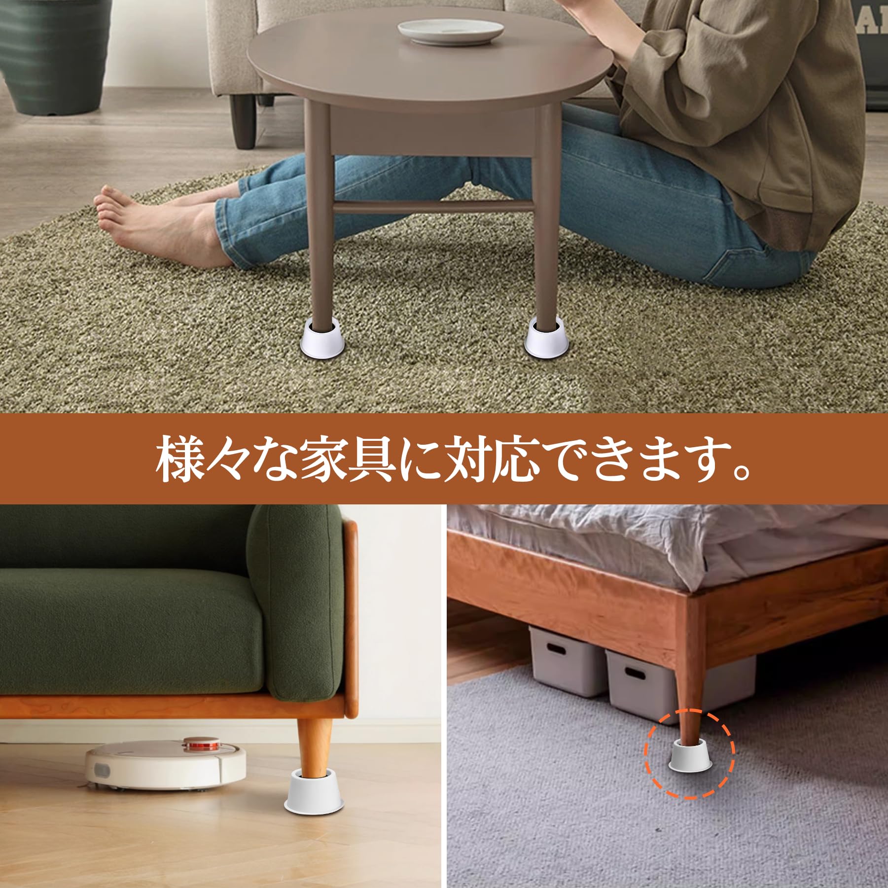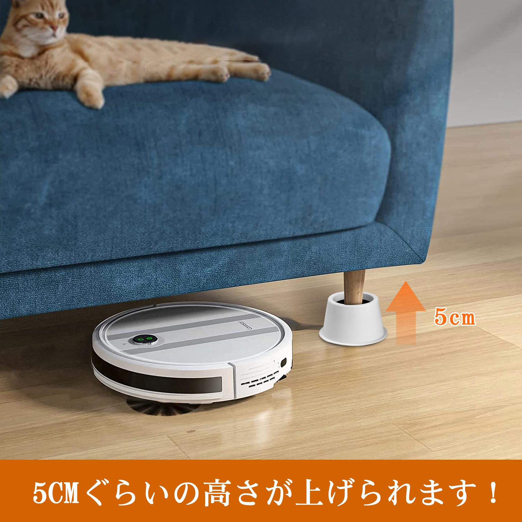 高さ5CM テーブル・こたつなど家具の高さ調節が簡単にできる 高さを上げる ベッド底上げ 4個セット 高さ調節脚 こたつ 継足し 継ぎ足 丸型 テーブル脚台 暖房器具 丸型 (耐荷重500kg) (ホワイト)
