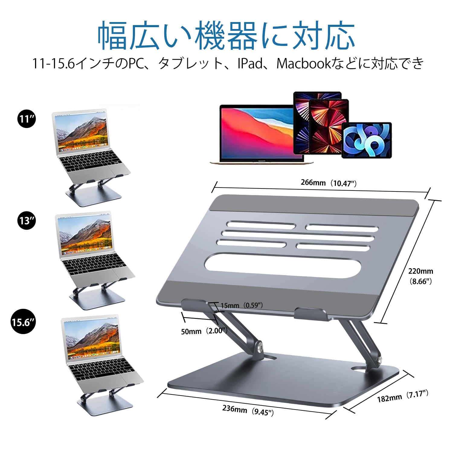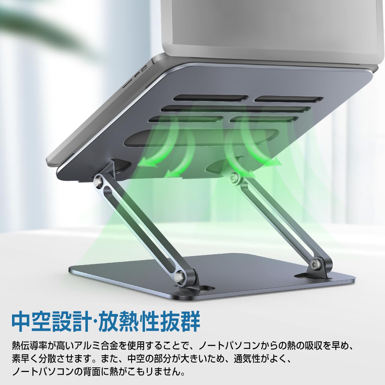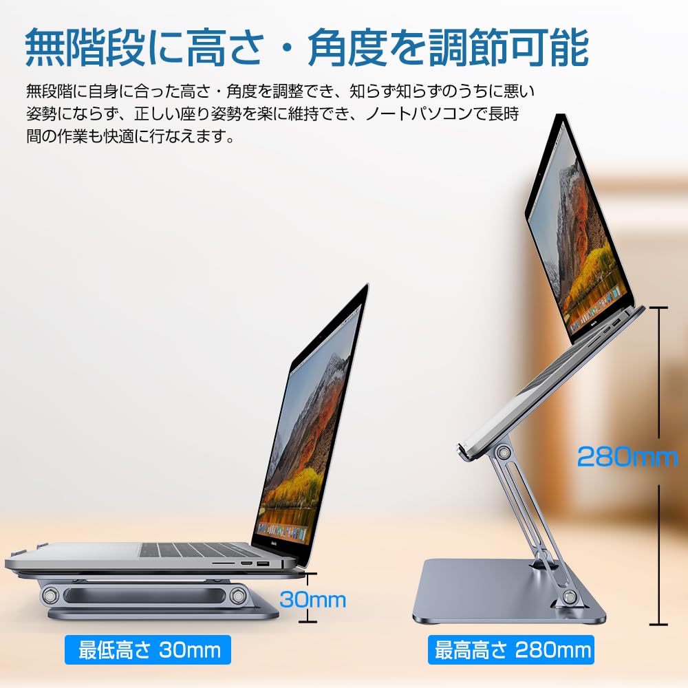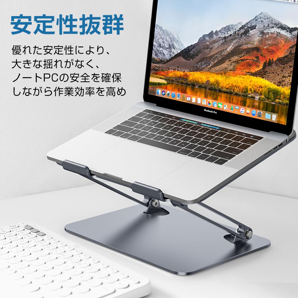 ノートパソコンスタンド 折りたたみ式 ノートPCスタンド【】 ノートパソコン用ラップデスク 無段階高さ角度調整 姿勢改善&猫背 滑り止めゴム 放熱対策 合金製 在宅仕事 ZOOM会議 Macbook/iPad/ノートPCなど15.6インチまでに対応 外付けキーボードをお勧めです グレー