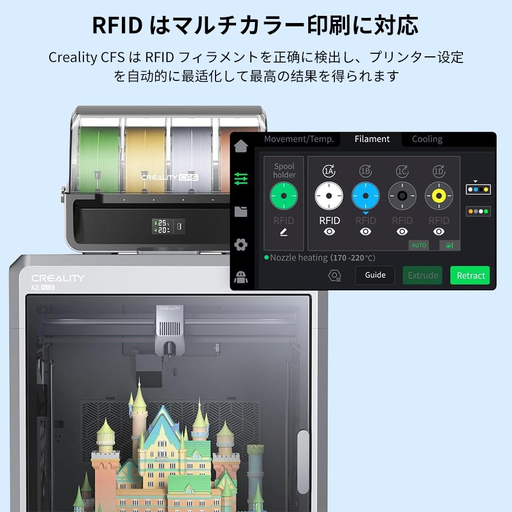 Creality Hyper-PLA-RFID フィラメント 高速印刷30-600mm/s PLA 1.75mm径 1KG 寸法精度±0.03mm RFID自動認識 3Dプリンタ造形材料 K2/K2 Pro/K2 Plusに対応 ほとんどのFDM3Dプリンターに対応 環境に優しい グレー