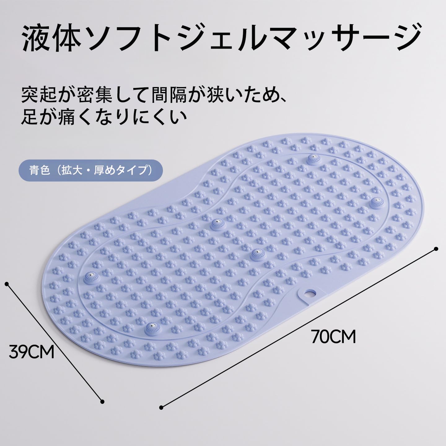 毎日の生活に、ちょっとした「ながらケア」を。 本商品は、室内での軽い運動と足裏マッサージを両立できる、高品質TPE素材の足ツボマットです。やわらかすぎず硬すぎない絶妙な突起設計が足裏全体を程よく刺激し、日々のリフレッシュや気分転換をサポートします。テレビを見ながら、家事の合間に、立ち仕事のあとに——特別な時間を作らなくても、手軽にセルフケアが始められます。 ■ こだわりの突起設計で足裏を心地よく刺激 緻密に計算された突起の配置が、足裏のツボにしっかりアプローチ。スロージョギング・ウォーキング・足踏み運動など、さまざまな「ながら運動」に対応しています。 ■ お好みのカラーを選べる 4色展開 「ピンク」「ブルー」「あんず」「パープル」の4色をご用意。お部屋の雰囲気やライフスタイルに合わせてお選びいただけます。自分へのご褒美はもちろん、家族や大切な方へのギフトにも最適です。 ■ 耐久性とお手入れのしやすさを両立 高品質TPE素材は弾力性と耐久性に優れ、長くご愛用いただけます。水洗いできるため常に清潔にお使いいただけます。柔らかい素材なので丸めてコンパクトに収納でき、クローゼットやドア裏にもすっきり収まります。