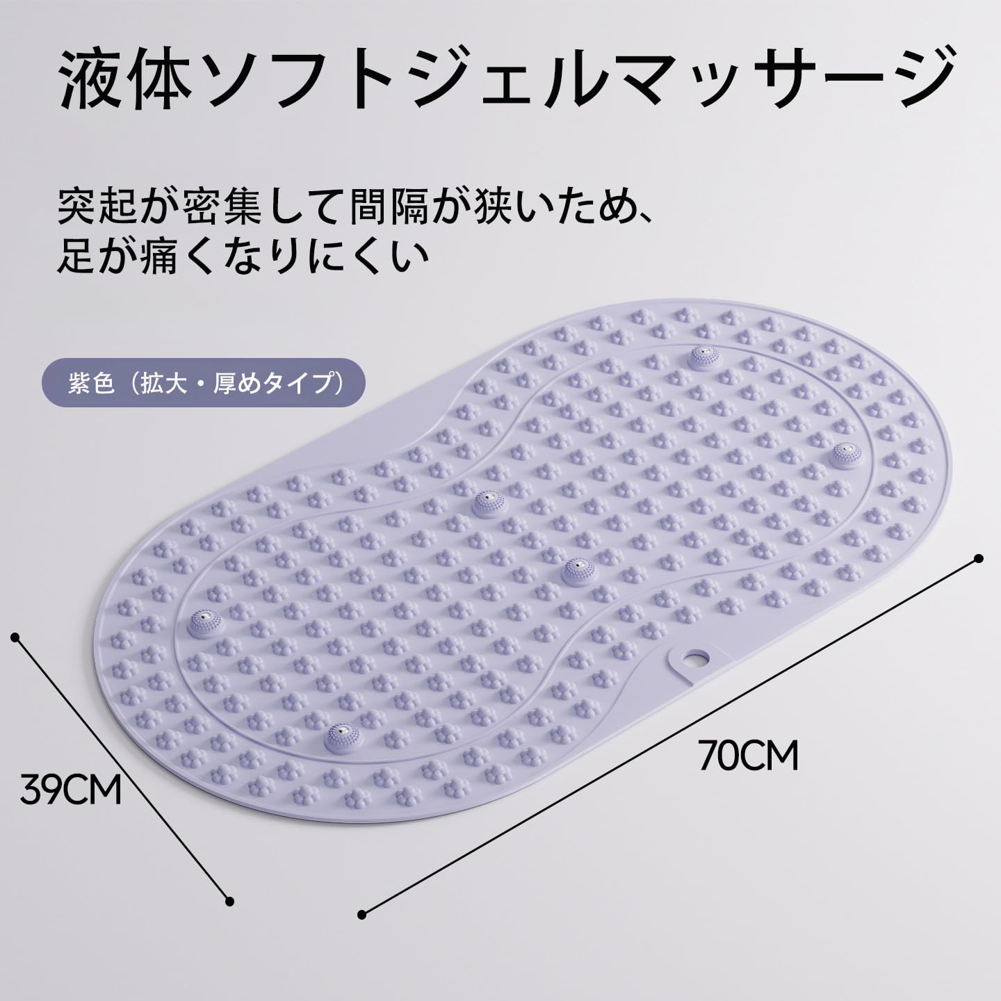 Ponko【2026最新】足ツボマット 指圧マット TPE素材 39×70cm 大判 4色展開 【ピンク/あんず/パープル/ブルー】 滑り止め付き 耐衝撃 丸洗い可 収納便利 ながら運動 室内ランニング 男女兼用 1枚売り (PURPLE)