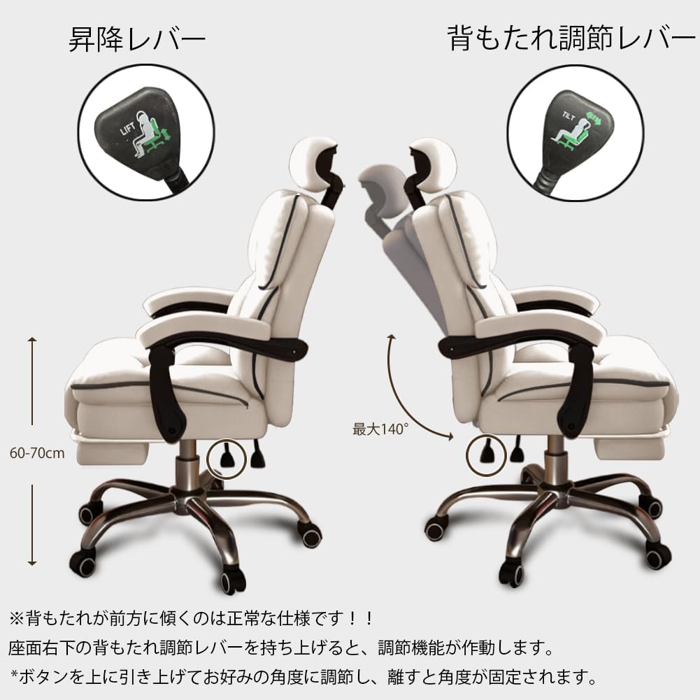 ゲーミングチェア オットマン付き 厚手クッションアームレスト 椅子 pcチェア ヘッドレスト付き 背もたれ140°調節 リクライニング げーみんくチェア デスクチェア ハイバック ヘッ PUレザー 防水・防汚・通気性 高さ調節可能 蒸れない座面 (グレー)