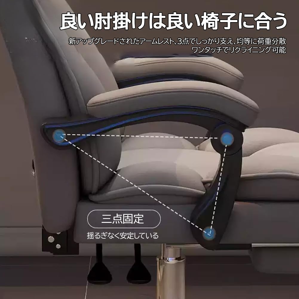 HERCULES ベルベット風 高級素材 通気性 リクライニング130度 フットレスト付き 在宅ワークチェア ワイド座面