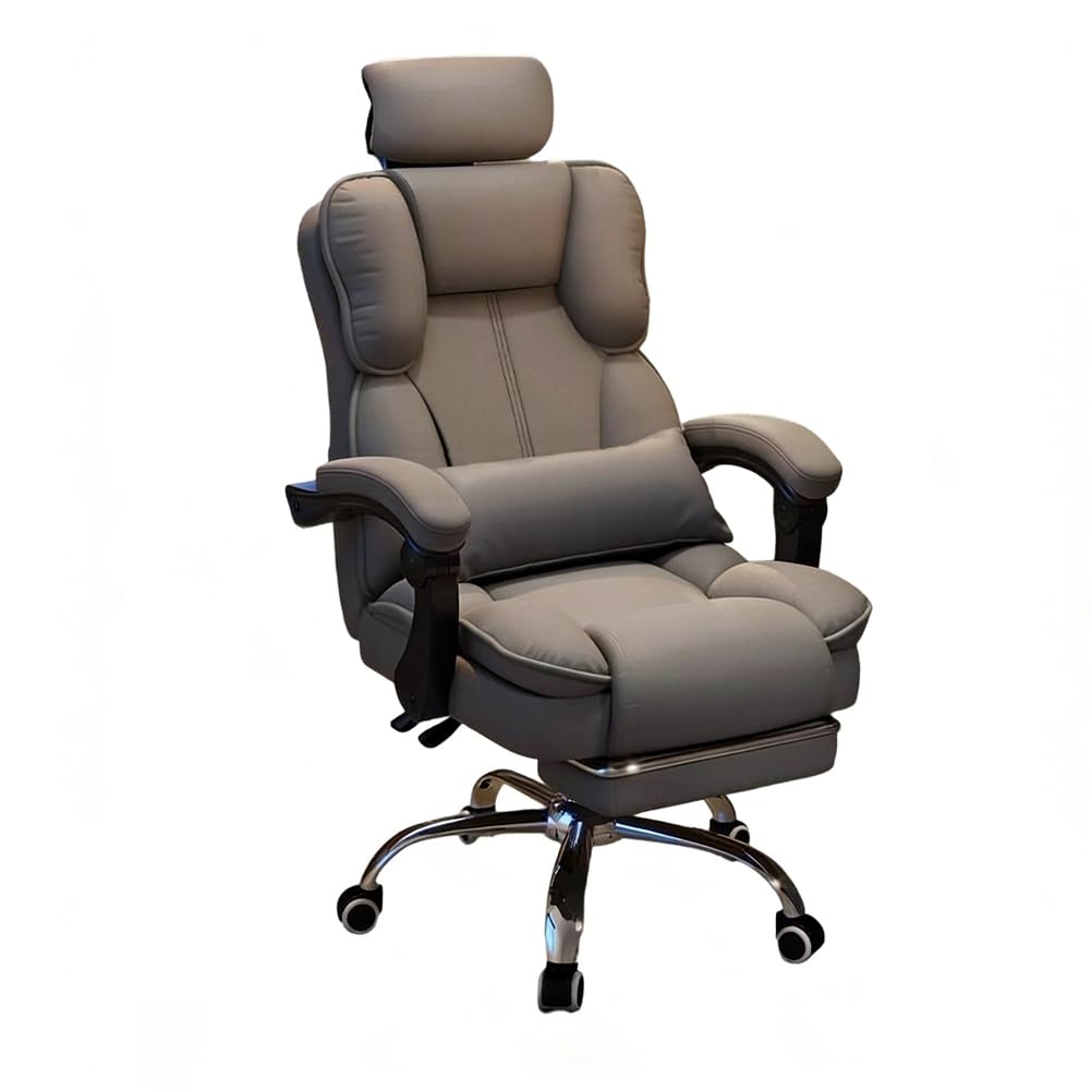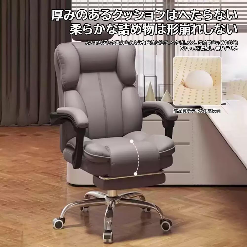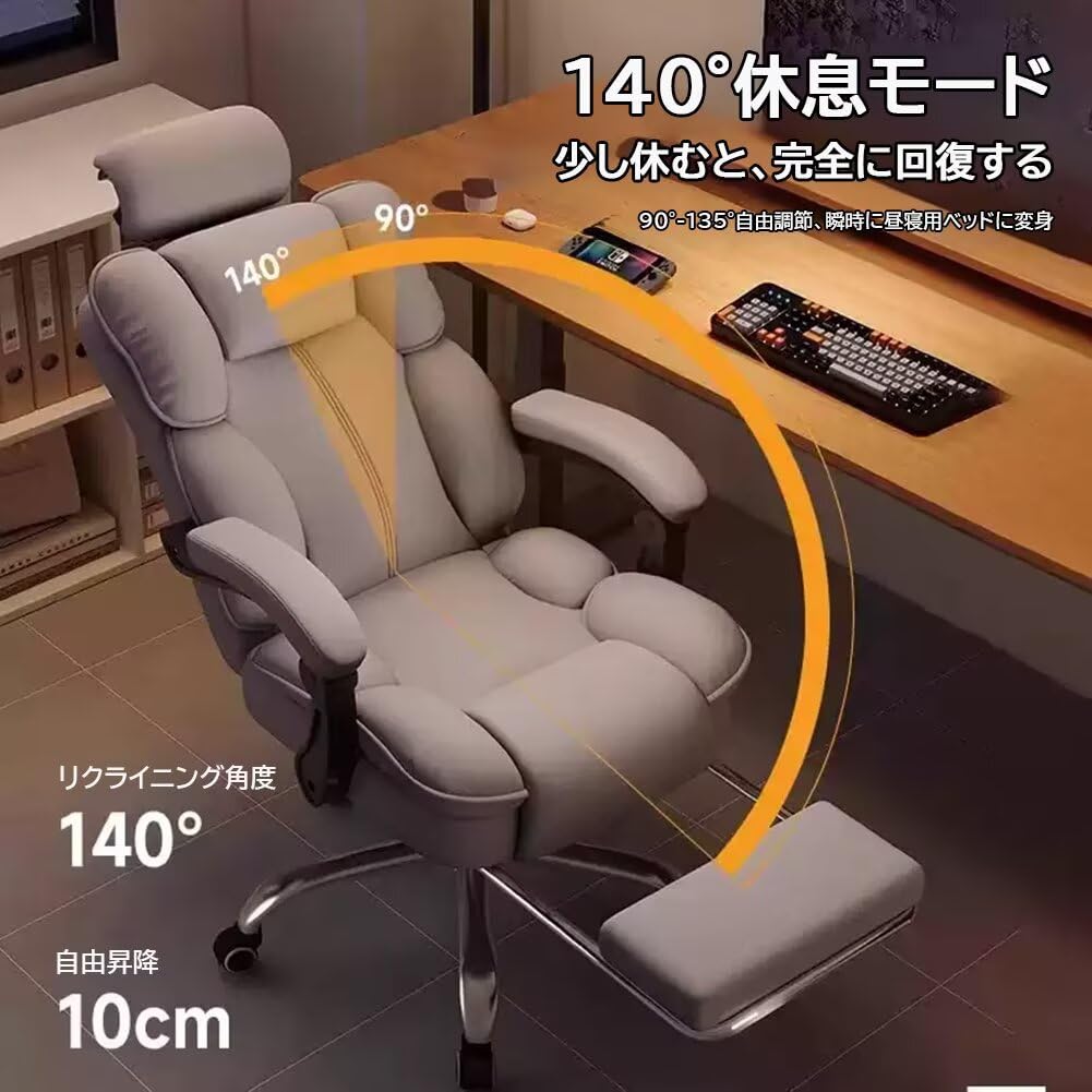 ゲーミングチェア オットマン付き 厚手クッションアームレスト 椅子 pcチェア ヘッドレスト付き 背もたれ140°調節 リクライニング げーみんくチェア デスクチェア ハイバック ヘッ PUレザー 防水・防汚・通気性 高さ調節可能 蒸れない座面 (グレー)