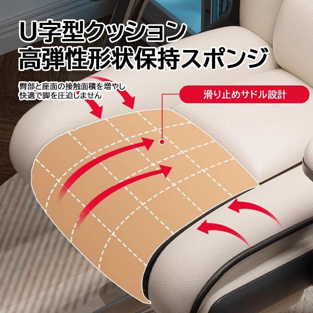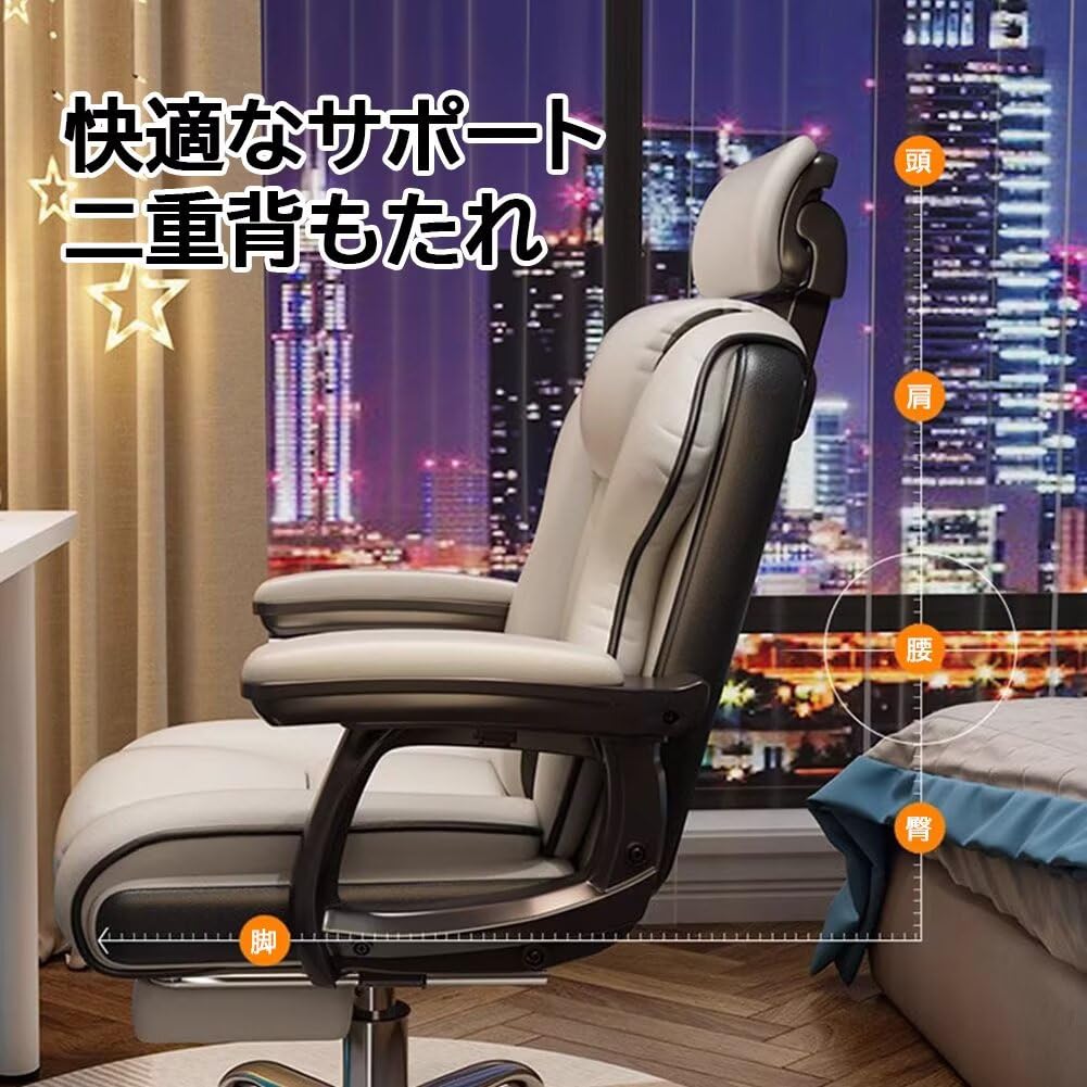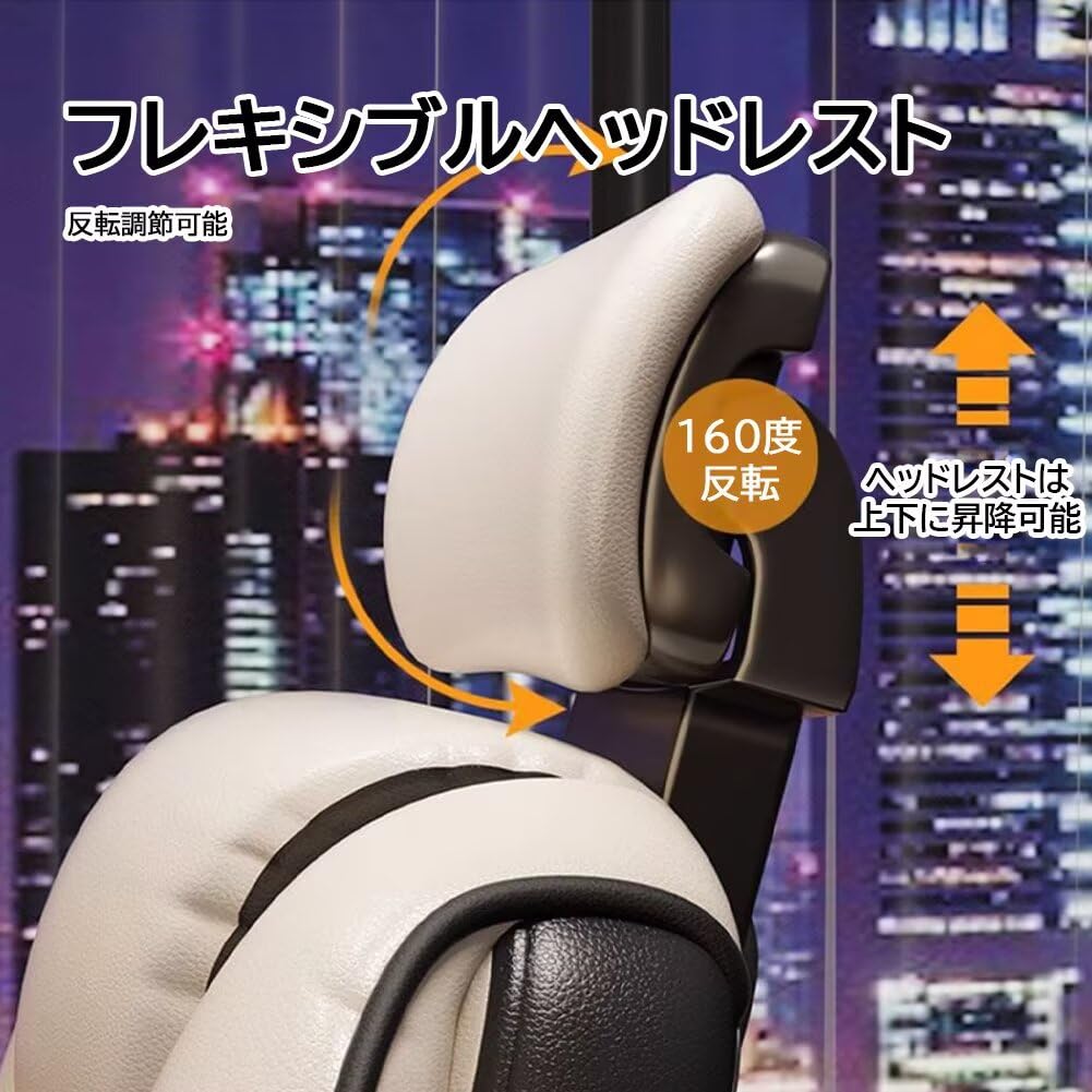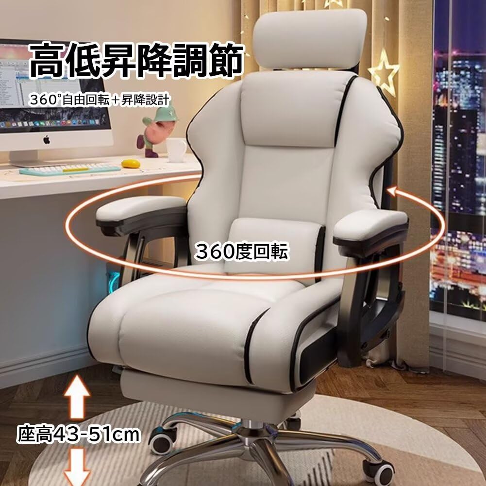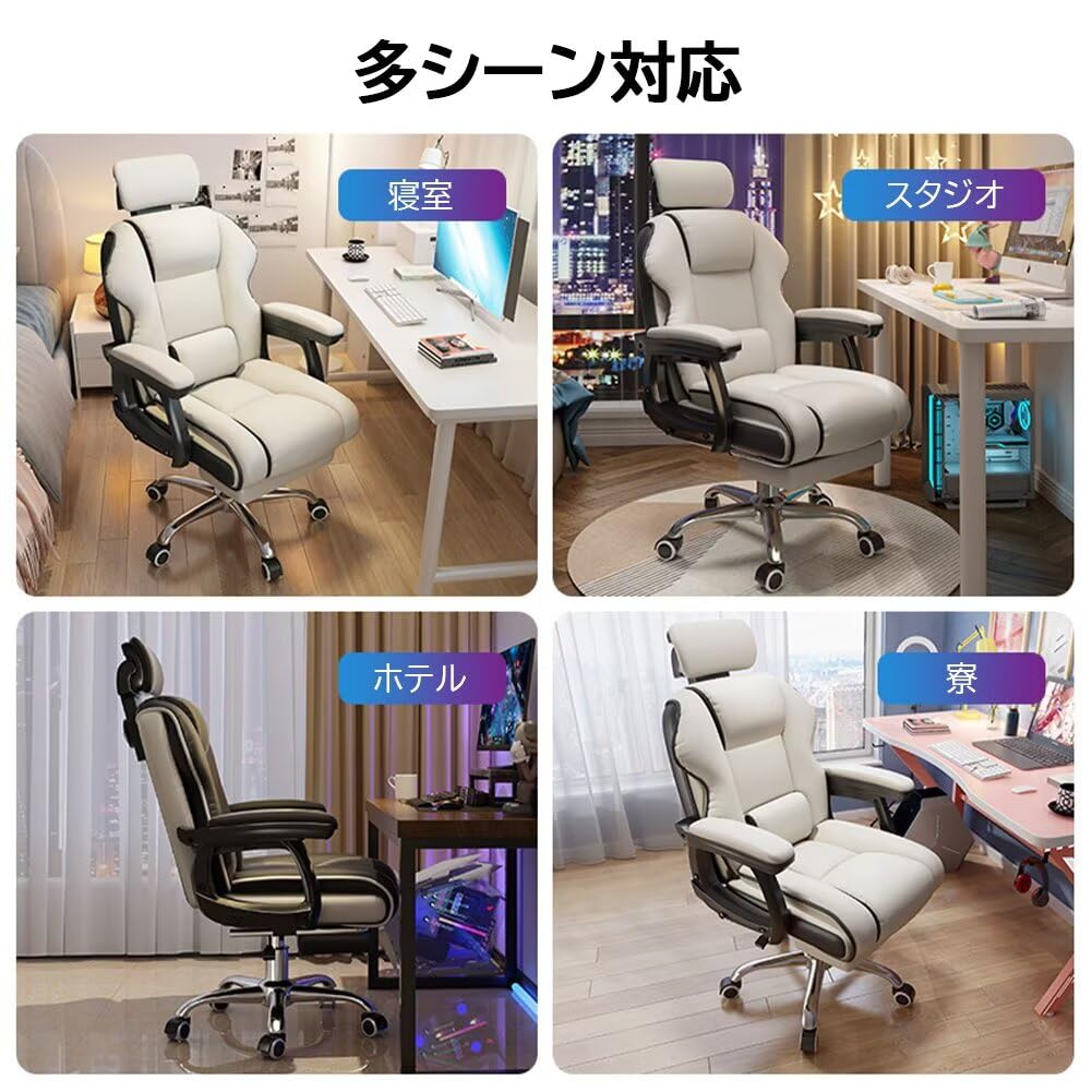 ゲーミングチェア オットマン付き 厚手クッションアームレスト 椅子 pcチェア ヘッドレスト付き 背もたれ140°調節 リクライニング げーみんくチェア デスクチェア ハイバック ヘッ PUレザー 防水・防汚・通気性 高さ調節可能 蒸れない座面 (ホワイト)