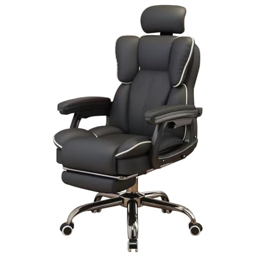 ゲーミングチェア オットマン付き PUレザー デスクチェア 椅子 pcチェア ヘッドレスト付き 140°リクライニング げーみんくチェア ハイバック ヘッ gaming chair 腰痛対策 防水・防汚・通気性 高さ調節可能 蒸れない座面(ブラック)