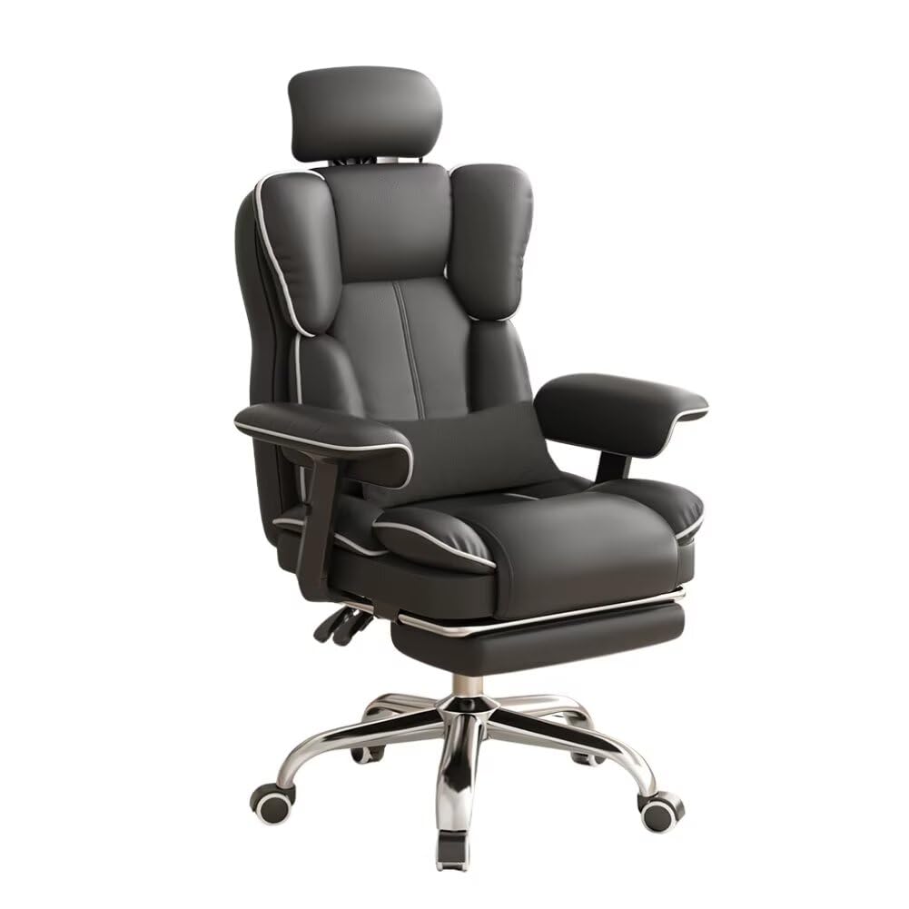 ゲーミングチェア オットマン付き 椅子 pcチェア ヘッドレスト付き 140°リクライニング げーみんくチェア デスクチェア ハイバック ヘッ gaming chair PUレザー 防水・防汚・通気性 高さ調節可能 蒸れない座面 (グレー)